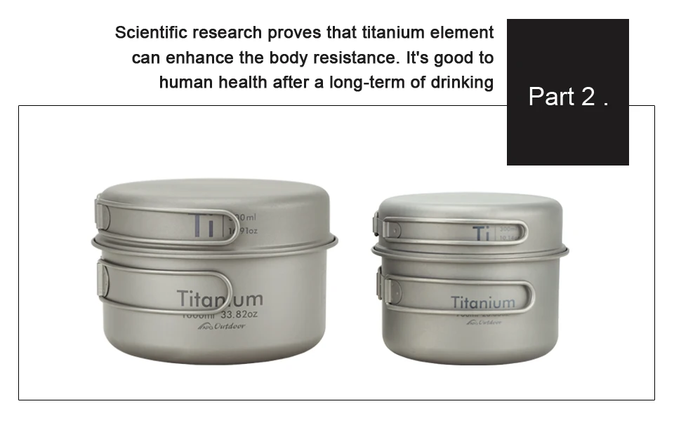 APG Набор титановой сверхлёгкой посуды со складными ручками два разных котелка с крышками-сковородами