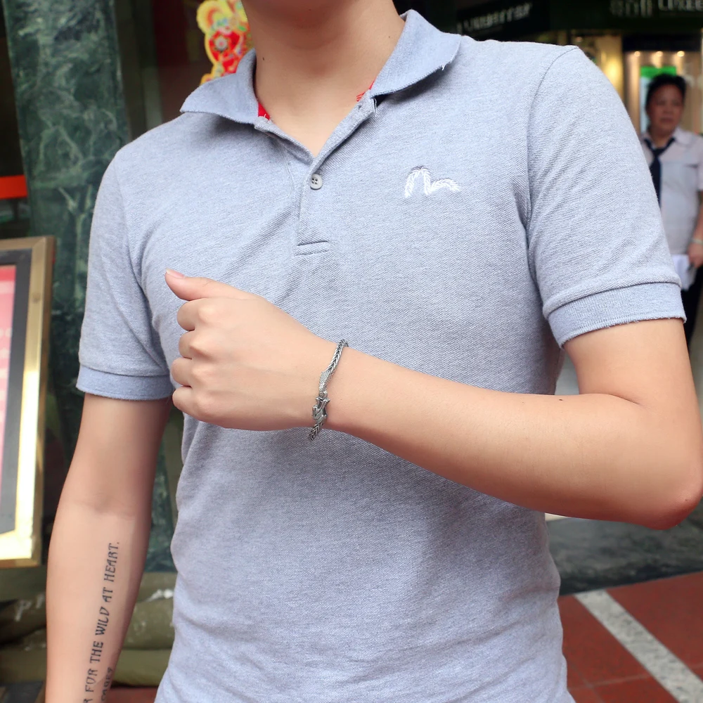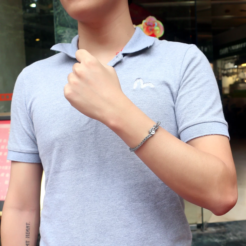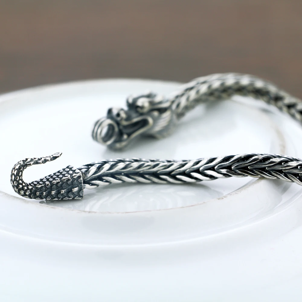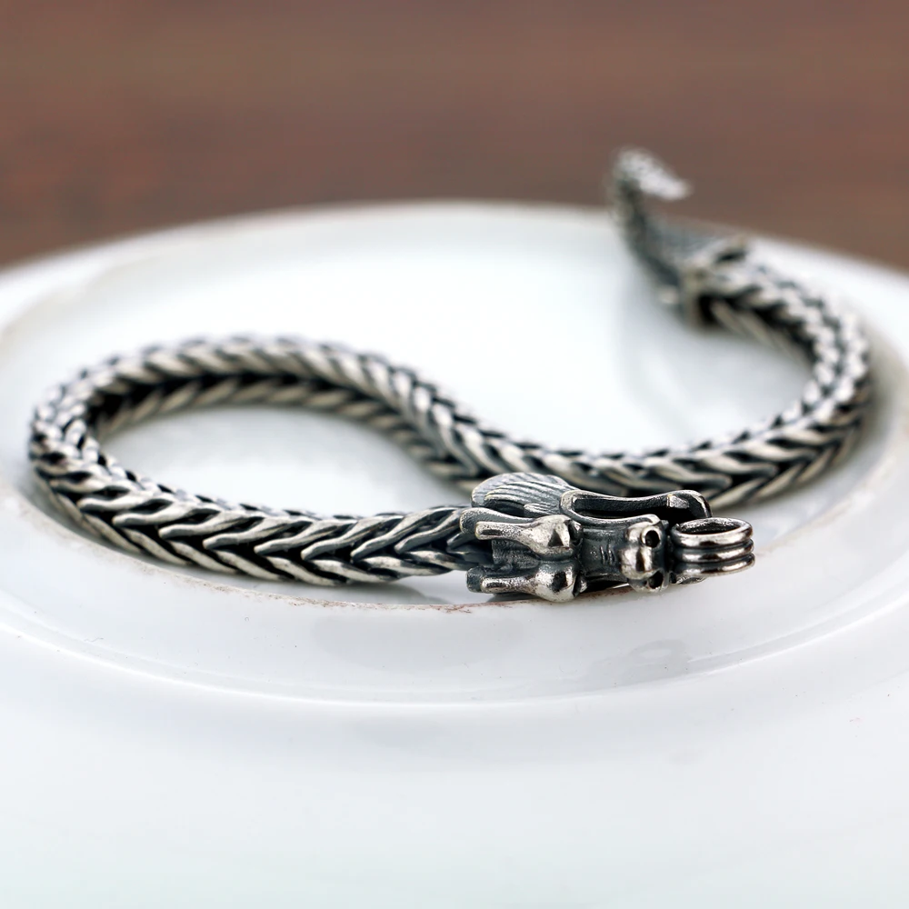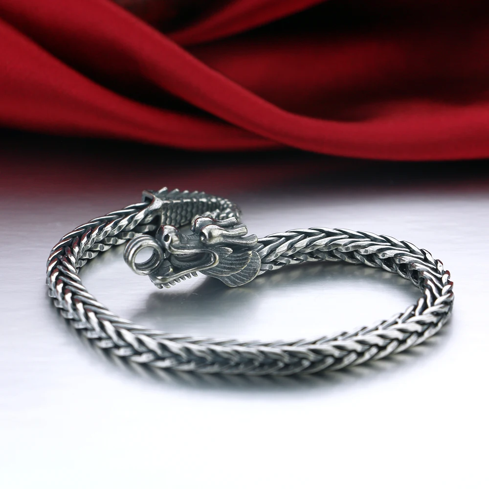 Мужской серебряный браслет, грубый винтажный браслет из тайского серебра 925 пробы с драконом