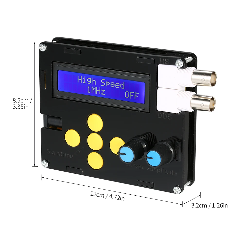 Особенности:Форма выходного сигнала: может выводить синусоидальную волну, квадратную волну, треугольную волну, переднюю волну sawtooth, обратную волну sawtooth, электрокардиограммовую волну, волну шума. Высокоскоростная квадратная волна.Источник питания: DC4 ~ 10 В. Мы рекомендуем вам выбрать DC5V при использовании адаптер переменного тока, и 3,7 V литиевая батарея при использовании аккумулятора.Ток: 160 мА, когда напряжение 5 В.DDS Частотный диапазон: Синусоидальная волна 1 Гц-500 кГц (амплитуда выхода уменьшится при дальнейшем повышении частоты), другие формы волны 1Hz-100 кГц (но при этом верхний предел Регулируемая частота не ограничена, если искажения и тряски требования не являются высокими, используйте Частотный может быть дополнительно увеличенная).Высокоскоростная частота (HS) выход до 16 МГц, можно выбрать 1 МГц, 2 МГц, 4 МГц, 8 МГц, 16 МГц.Амплитуда сигнала DDS смещенного количества может регулироваться отдельно двумя потенциометрами.Все параметры настройки могут быть сохранены, питание автоматически восстановит последнюю используемую конфигурацию.Можно разделить на значение: 1, 10, 100, 1000, 10000 Гц.Поставляется с адаптером питания для источника питания.ЖК-дисплей для точного указания данных.Характеристики:Тип вилки: США/ЕС/Великобритания (опционально)Материал: FR4 + акрилРабочее напряжение: DC4 ~ 10 ВDDS Частотный диапазон: 1 Гц-500 кГцРазрешение: 1 ГцСинусоидальное Искажение: <1% ниже 1 кГц, <0.5% выше 1 кГцАмплитуда выхода: Максимальная ± 10 В (P-P)Выходное сопротивление: 50 ОмСмещение постоянного тока: максимум ± 10 ВРазмер изделия: прибл. Размер: 12*8,5*3,2 см/4,72*3,35 * 1.26inВес изделия: 147 г/5,19 унцийРазмер посылка: прибл. 16*11*5 см/6,30*4,33 * 1.97inВес посылка: 272 г/9,59 унцийПримечание:Прибор будет поврежден, если напряжение выше 10 в.Посылка:1 * генератор сигналов1 * тестовая линия зажима крокодила1 * Адаптер питания1 * Руководство пользователя (на английском языке)