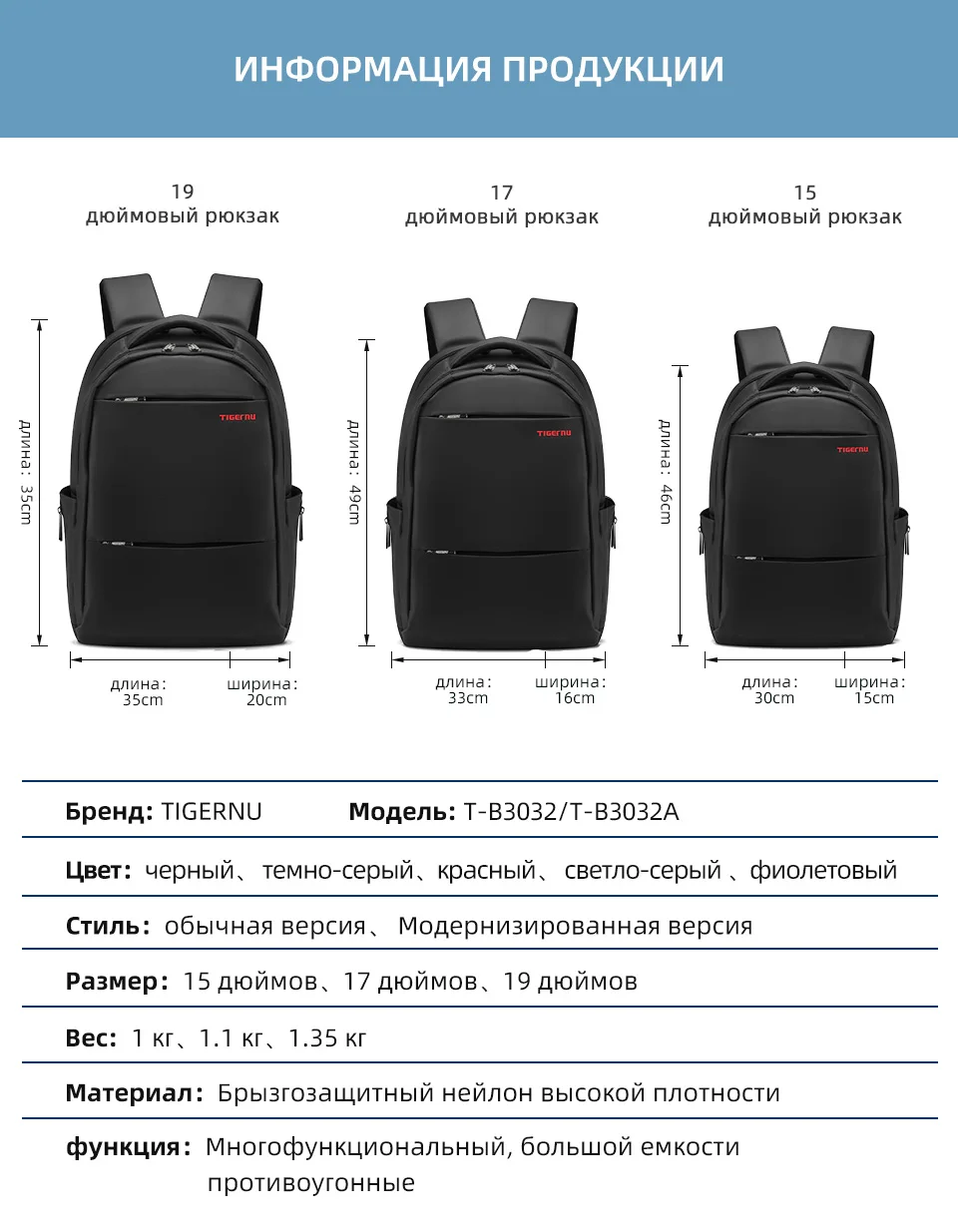Рюкзак Tigernu мужскойженский для ноутбука 17 дюймов, брендовый вместительный повседневный деловой портфель с защитой от кражи, школьный ранец