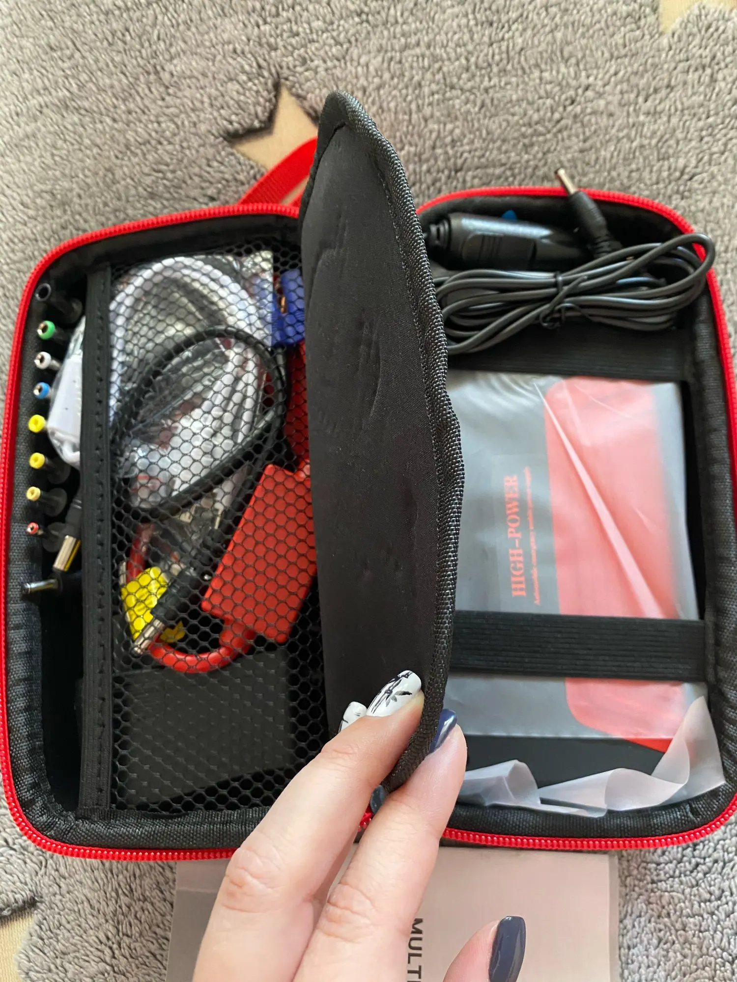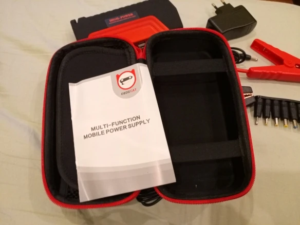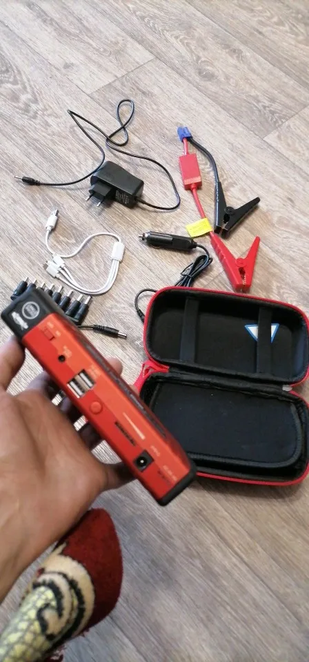 Ну что сказать,прибор возложенных на него надежд не оправдал.Аккумулятор слабоват для стартера,полный заряд 12,46в.Думаю,как вспомогательный аккумулятор пойдет.Еле-еле завёл Акцент без аккумулятора,и это притом,что машина заводится сполоборота.При переключении показаний 12в,16в19в напряжение нигде не меняется,заряжен до 100%.Фонарь, стробоскоп и полицейская мигалка работают, гаджеты вроде заряжает,но сам при этом быстро теряет заряд.Красная цена этому пауэрбанку с кейсом и всевозможными кабелями и переходниками рубля полтора.Но зато доставка порадовала:16 заказал_18 уже привёз курьер IML.Для меня это единственный плюс.Второй раз не купил бы.