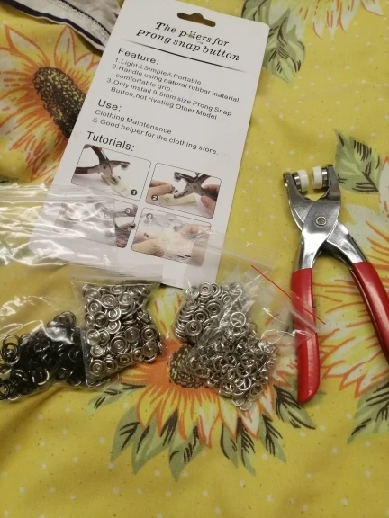 Установщик кнопок только на тонкие ткани. На хлопке в 2 слоя кнопки выпадают, попробывали прожать сильнее, погнулись внутри, на сколько хватит не знаю. На тонком трикотаже вроде держатся. Может дело в кнопках.... Всё таки без тэпа не обойтись.