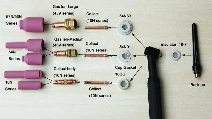 Этот товар может работать с WP 17 и 26 серии факелами с воздушным охлаждением и 18 сериями факелами с водяным охлаждением,Включая Lincoln PTA-17, PTA-18 и PTA-26 факелами,Miller Diamondback DB17,DB18 и DB 26 факелов, а также сварочные WP-17, WP-18 и WP-26 факелов.