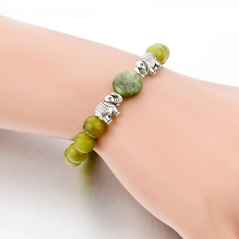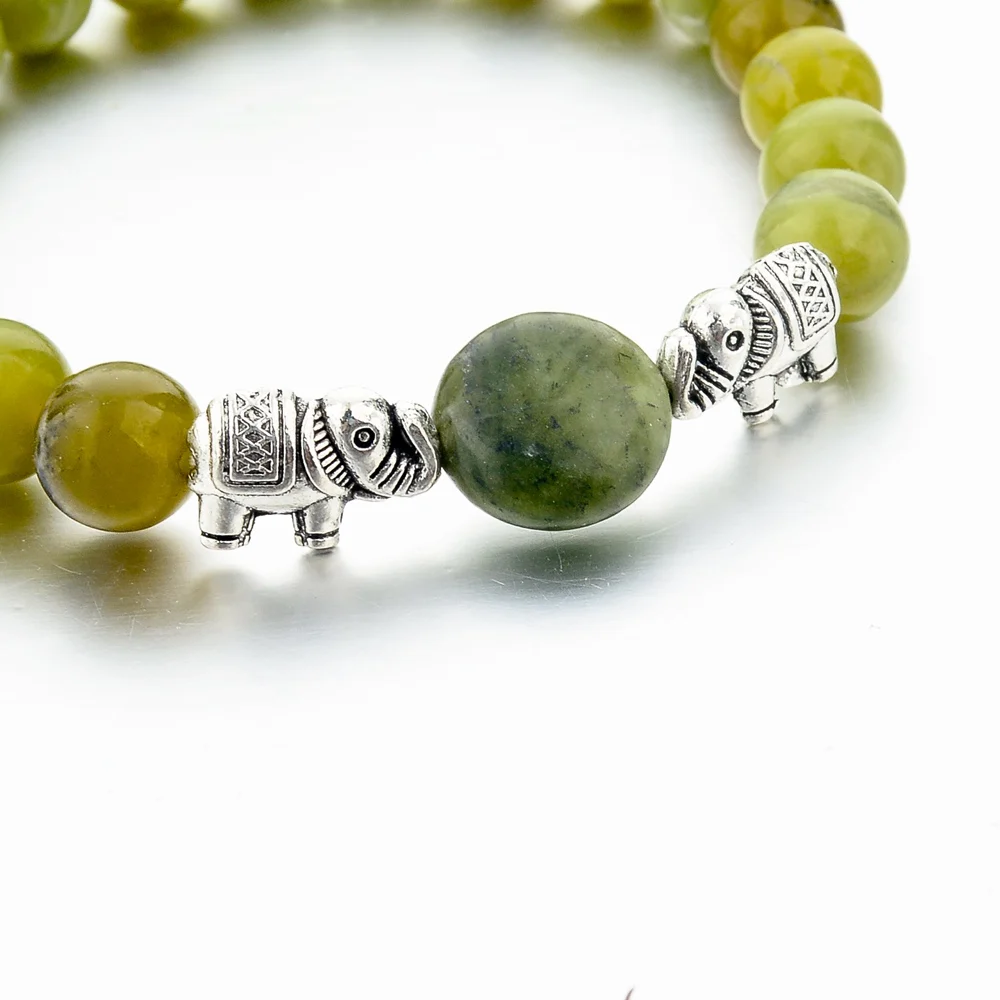 Зеленые браслеты с бусинами из натурального камня для женщин и мужчин браслеты со слоном этнические ювелирные изделия номинация браслет бижутерия Sbr150264