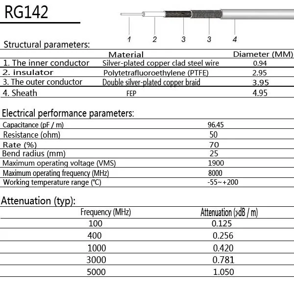 Тип кабеля: RG142 коаксиальный кабель с низкой потерей