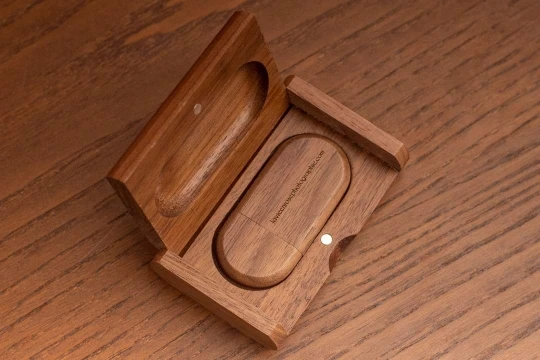 Деревянная коробка выглядит красиво. Емкость usb-накопителя верна.
