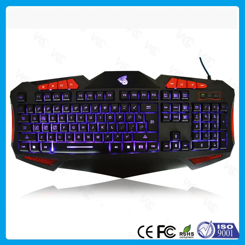 3 цвета с подсветкой led игровая клавиатура геймер задний светильник переключаемый синий красный фиолетовый светильник с высоким сенсором для компьютера Бесплатная доставка