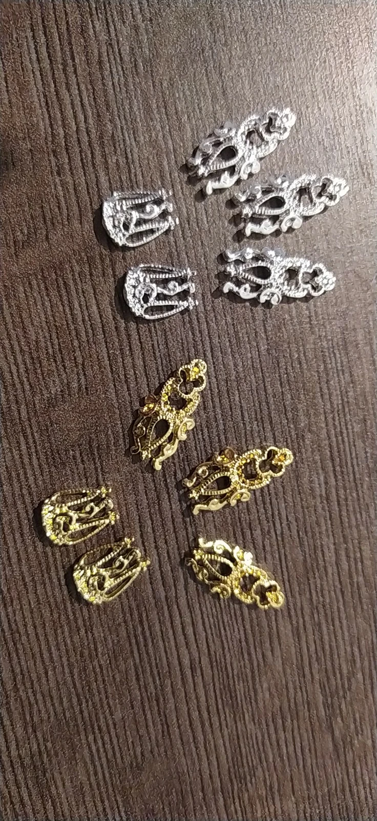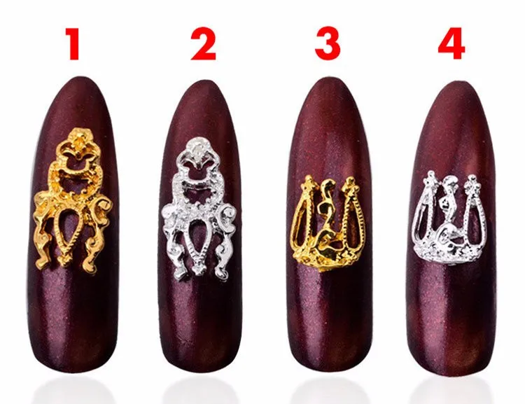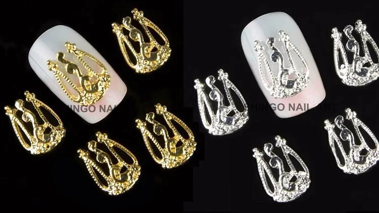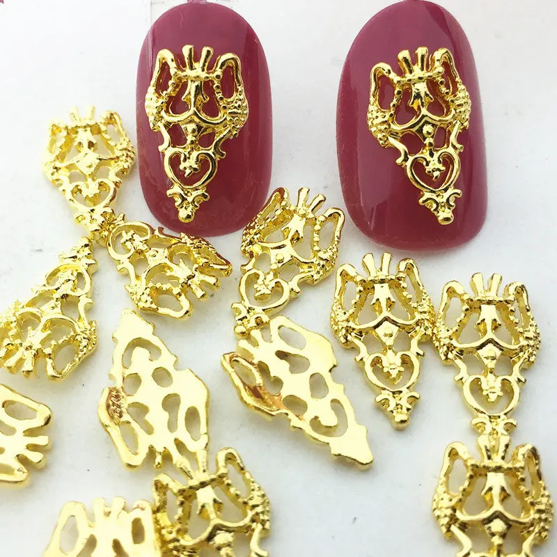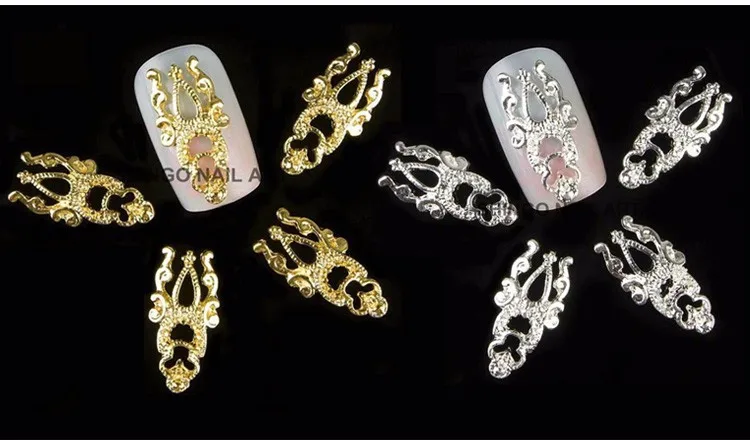 3D украшения для ногтей, 10 шт., золотые и серебряные металлические украшения для ногтей, аксессуары для красоты ногтей, японские ретро-украшения для маникюра
