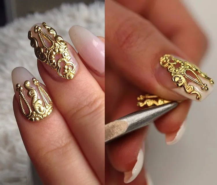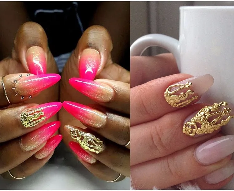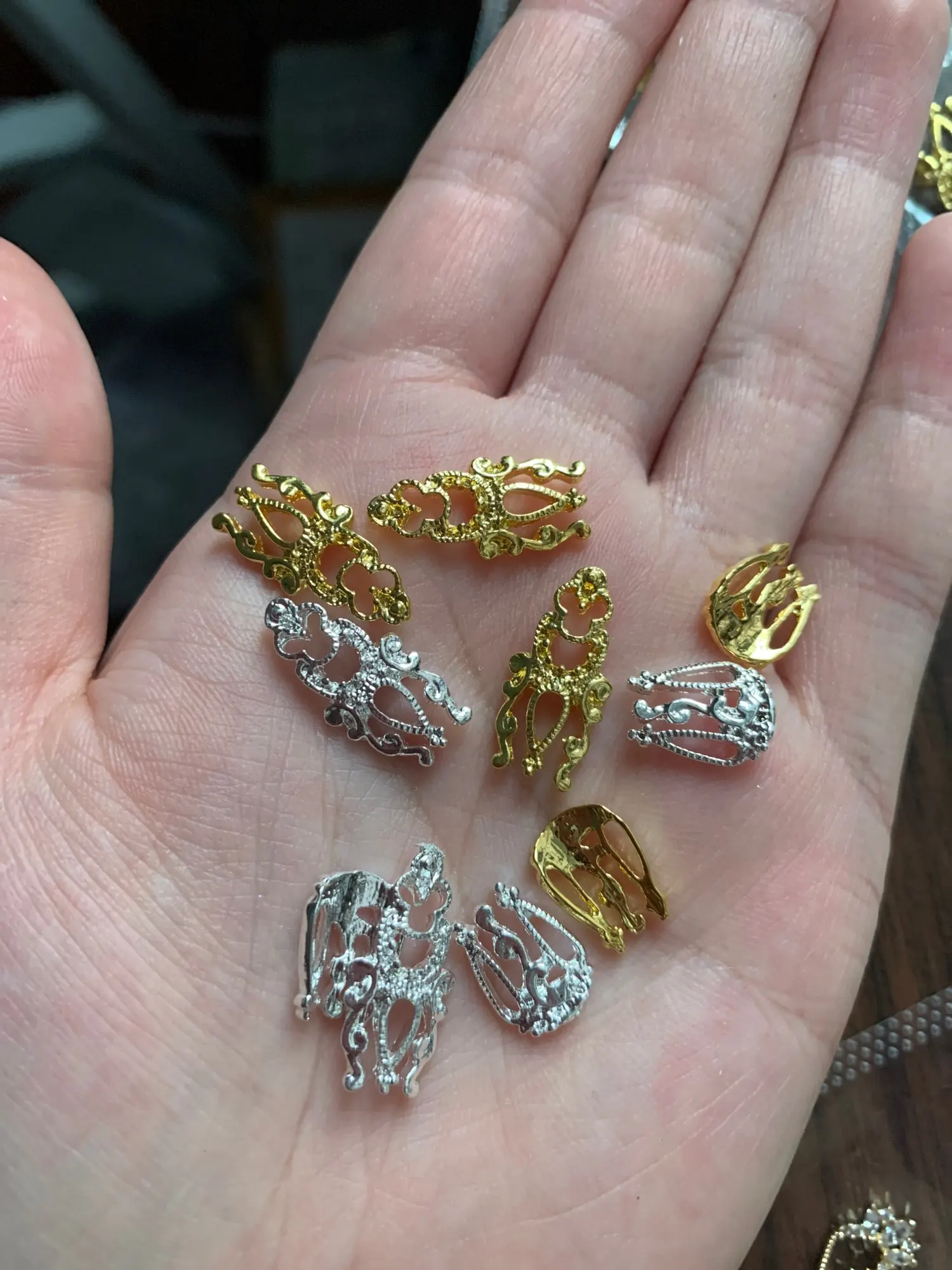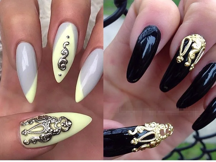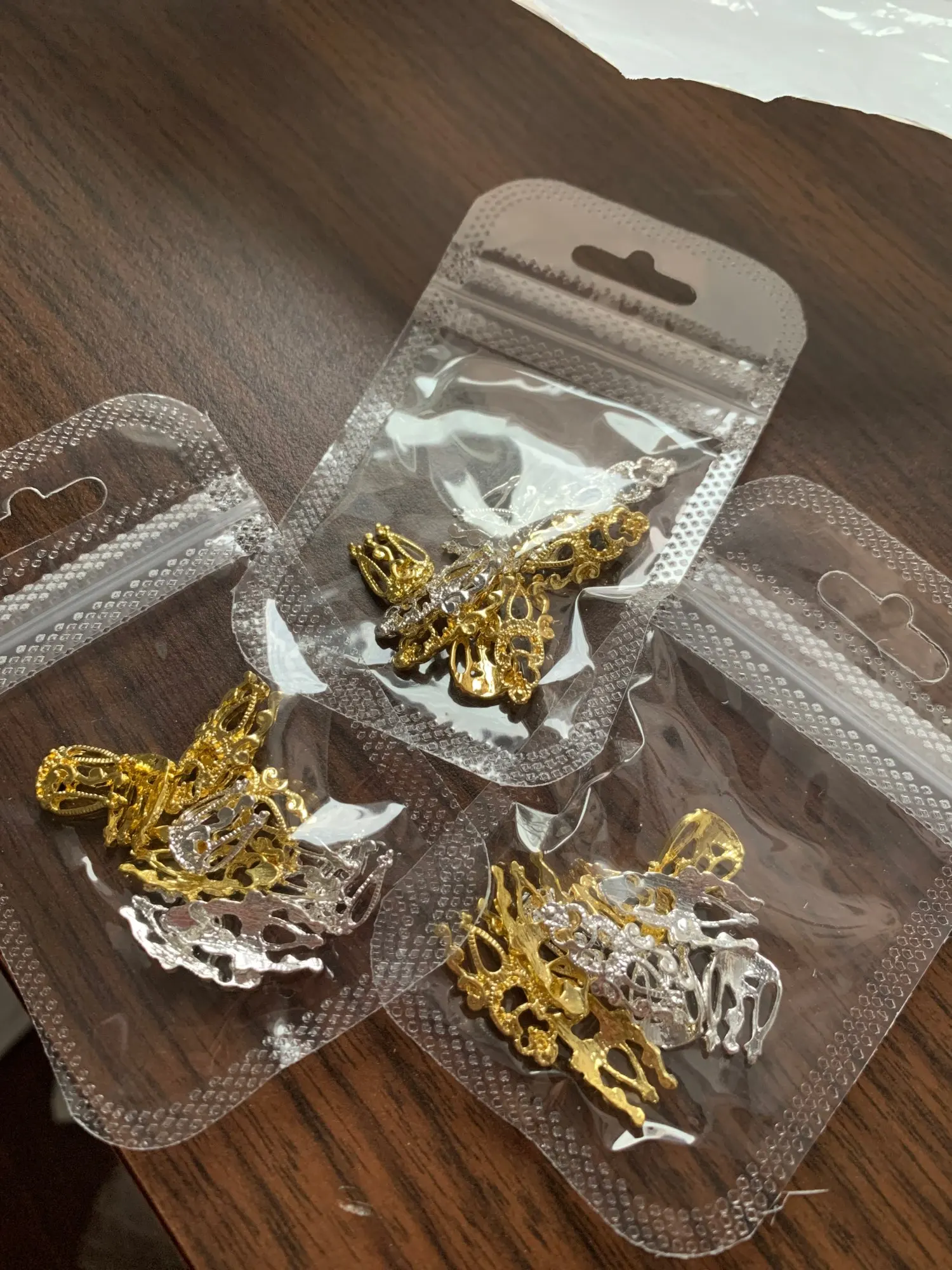 3D украшения для ногтей, 10 шт., золотые и серебряные металлические украшения для ногтей, аксессуары для красоты ногтей, японские ретро-украшения для маникюра