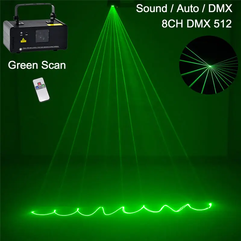 Лазерный мини-сканер DPSS 50 МВт с зеленым лучом, беспроводной пульт дистанционного управления