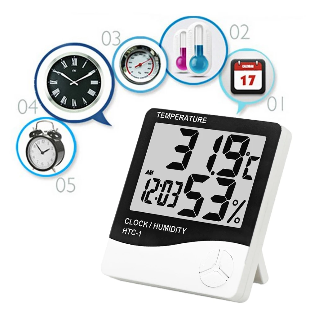 Комнатный Цифровой термометр гигрометр Измеритель температуры и влажности Часы HTC-1 для дома C & F дисплей метеостанция