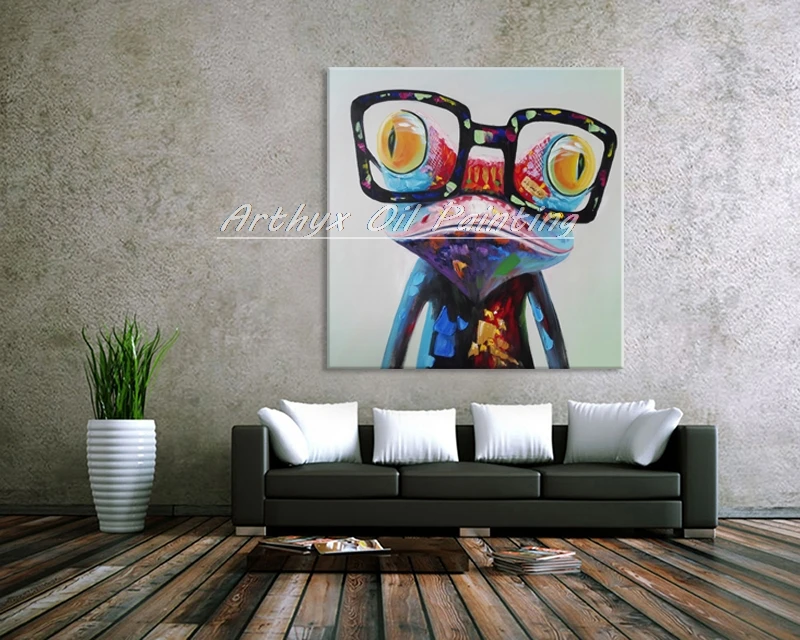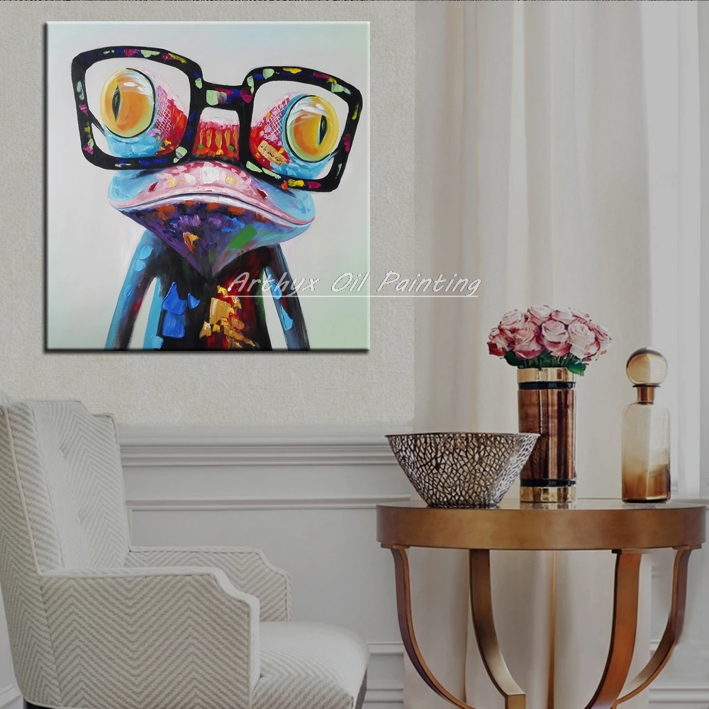 Описание товара:Arthyx очки лягушка ручная роспись Большой абстрактный животный мультфильм картина маслом на холсте украшение на стену для детской комнаты поп-арт.
