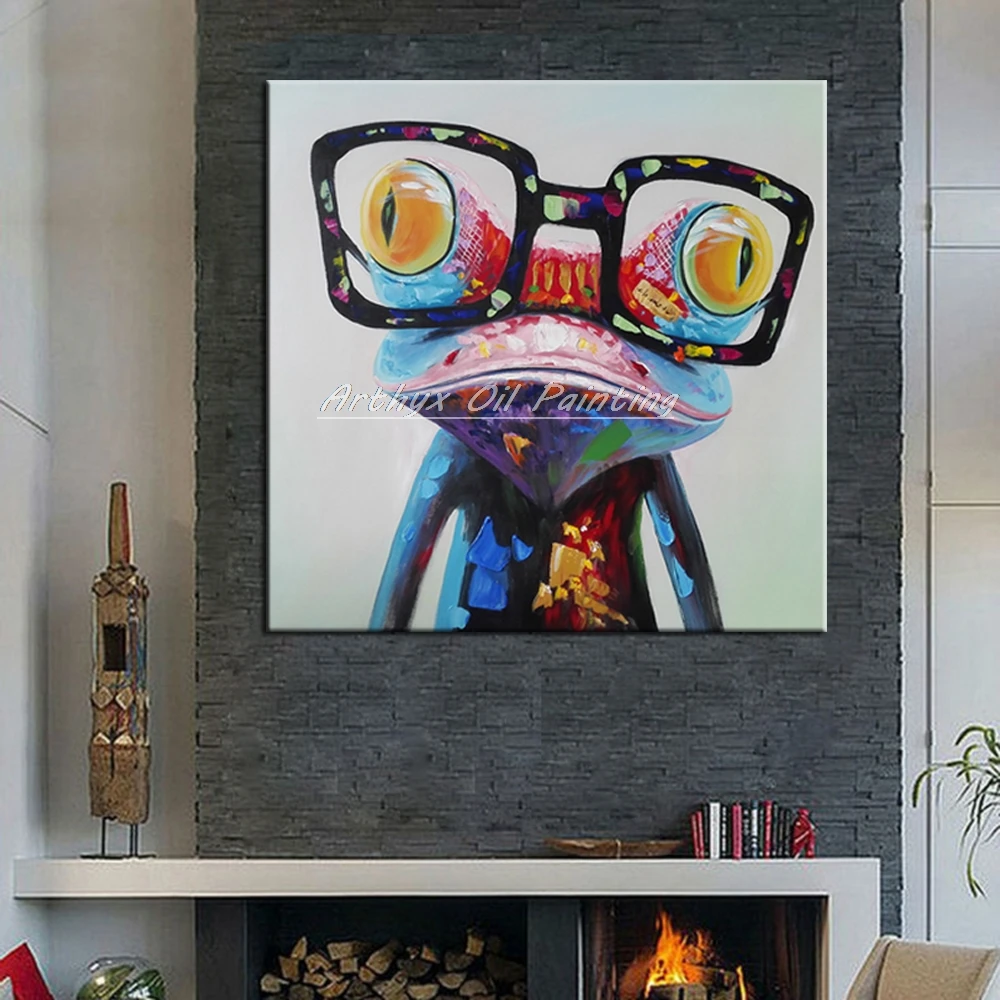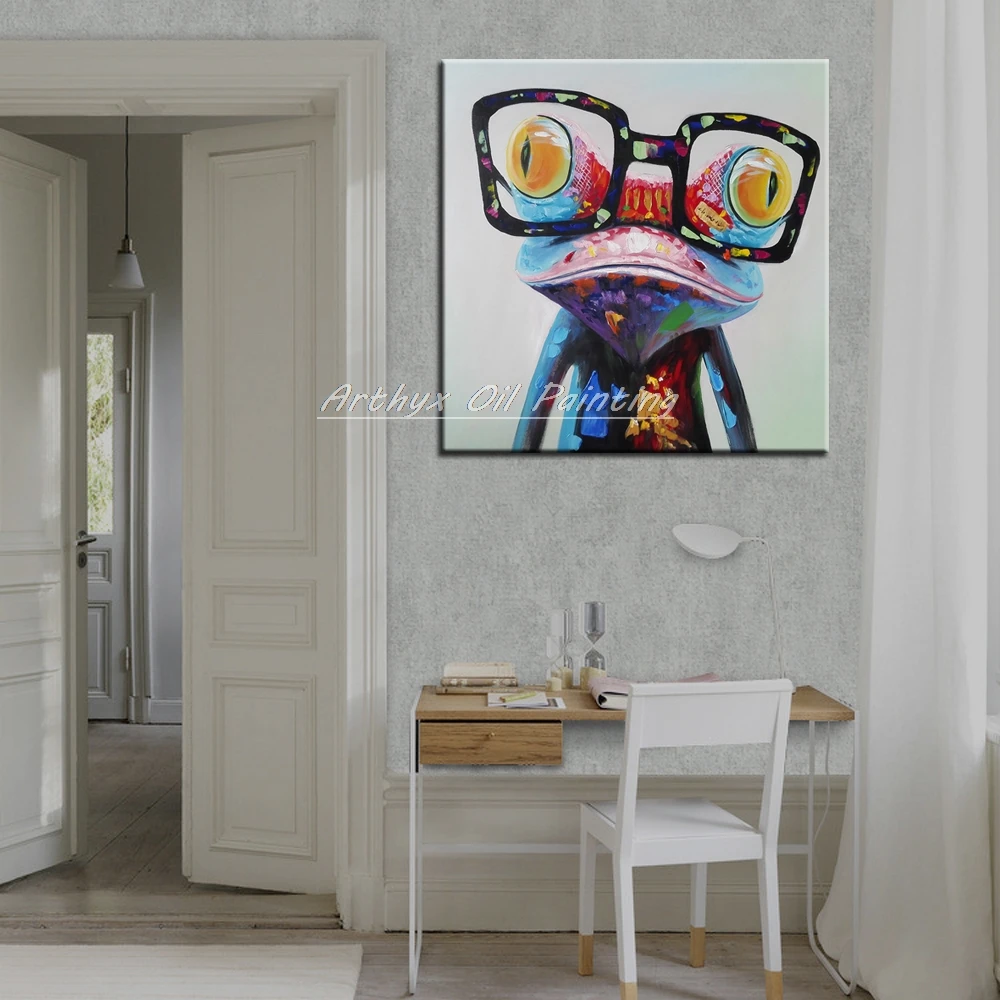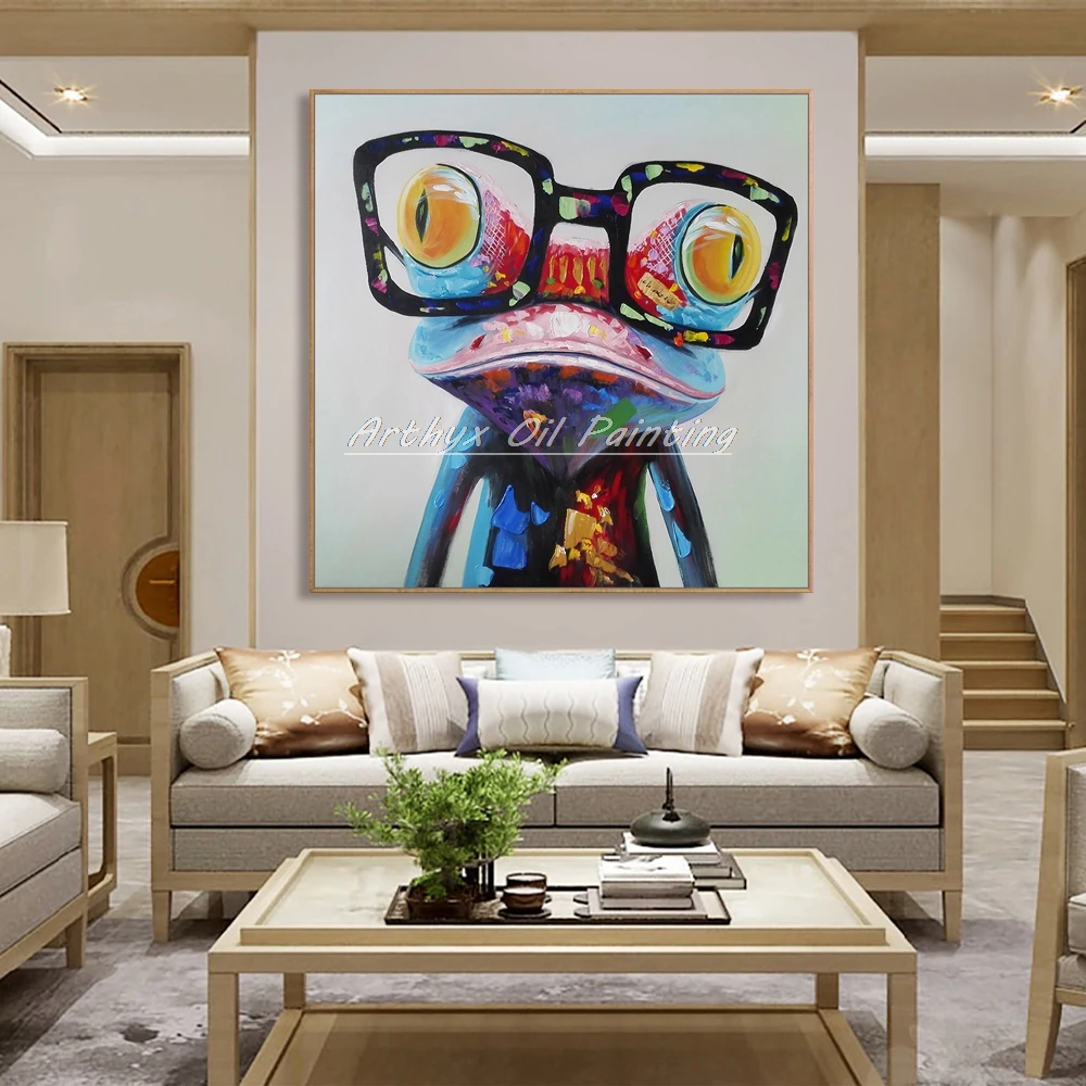 Arthyx очки лягушка ручная роспись Большой абстрактный животный мультфильм картина маслом на холсте украшение на стену для детской комнаты поп-арт