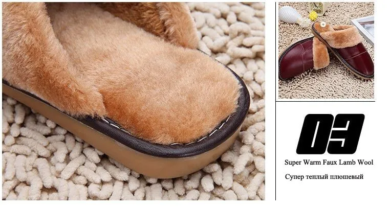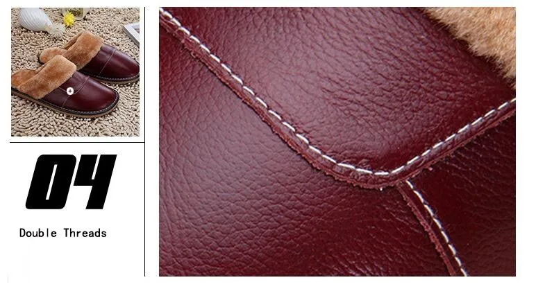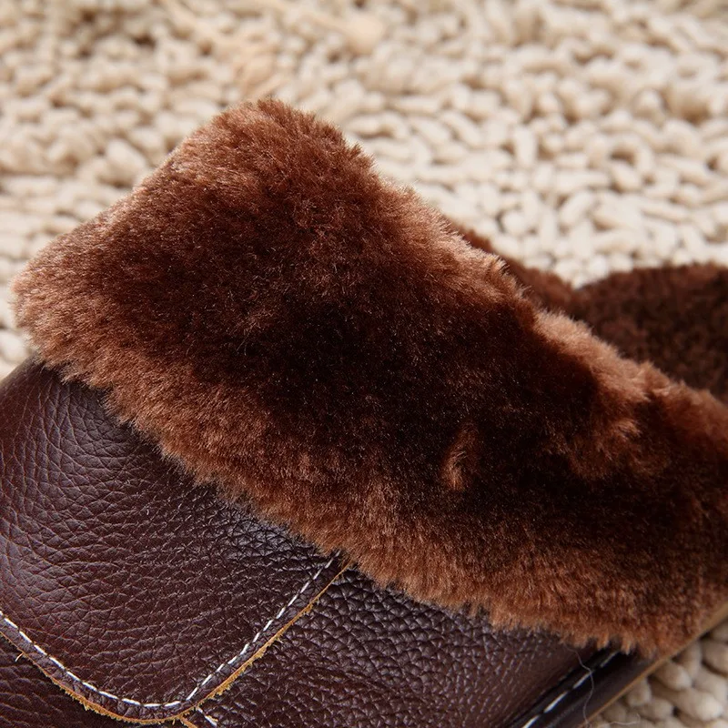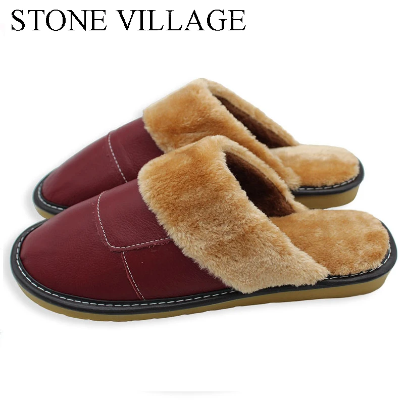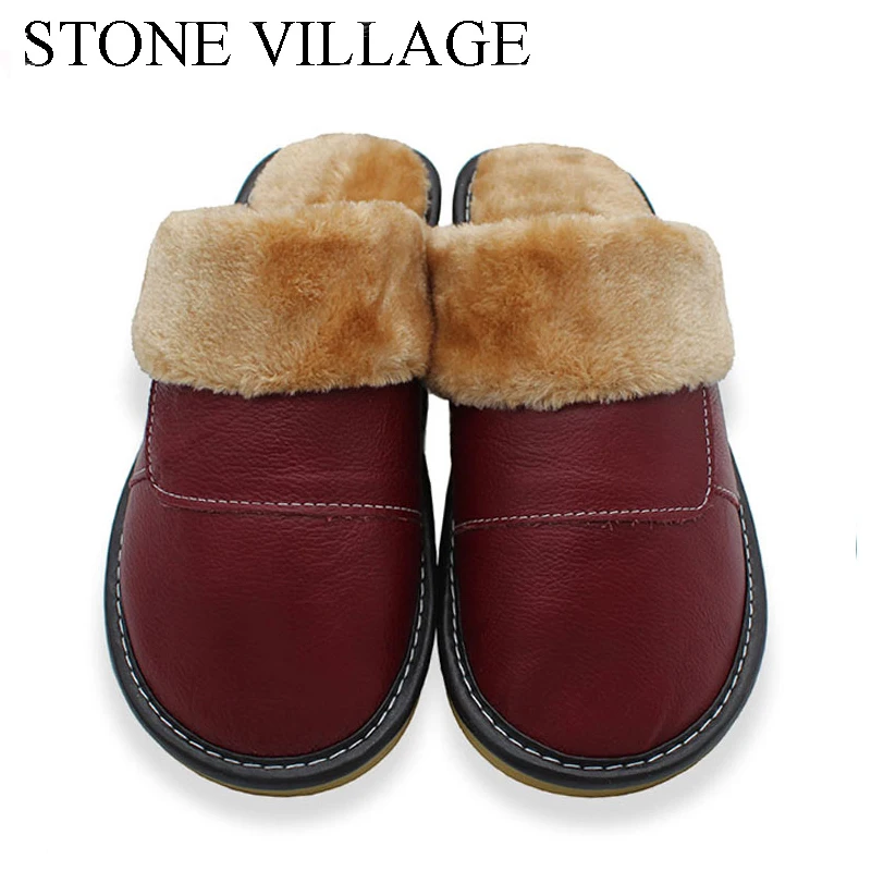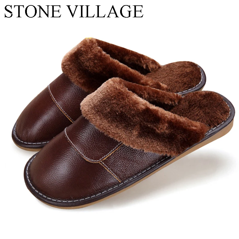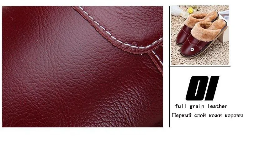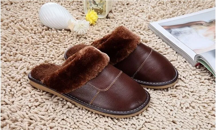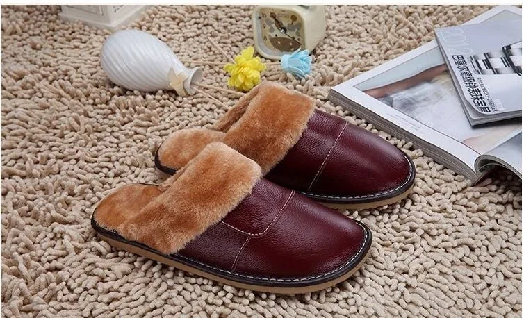 Тапки из натуральной кожи для мужчин и женщин, домашние тапочки, плюшевая теплая обувь, Размеры 35-44, 2020