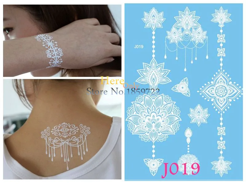 1 шт. женская свадебная татуировка, белая хна, цветок, рука, шея, макияж, флэш, поддельные татуировки, ювелирные изделия, водонепроницаемые, временная татуировка, наклейки