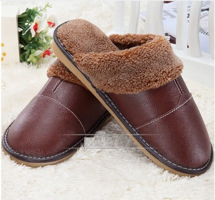 Теплые зимние домашние тапочки из натуральной кожи противоскользящие уплотненные теплые домашние туфли хлопковые женские и мужские тапочки 5 цветов большие размеры 35-44