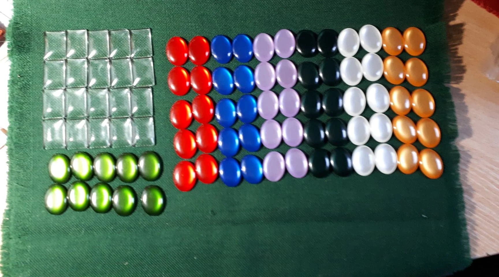 Кабошоны классные, но мне попался не особо удачный набор - 5 штук зеленых оттенков и 2 синих, которые я заказывала упаковкой в прошлый раз. Надеялась, что попадется хотя б 1 красный и розовый((((