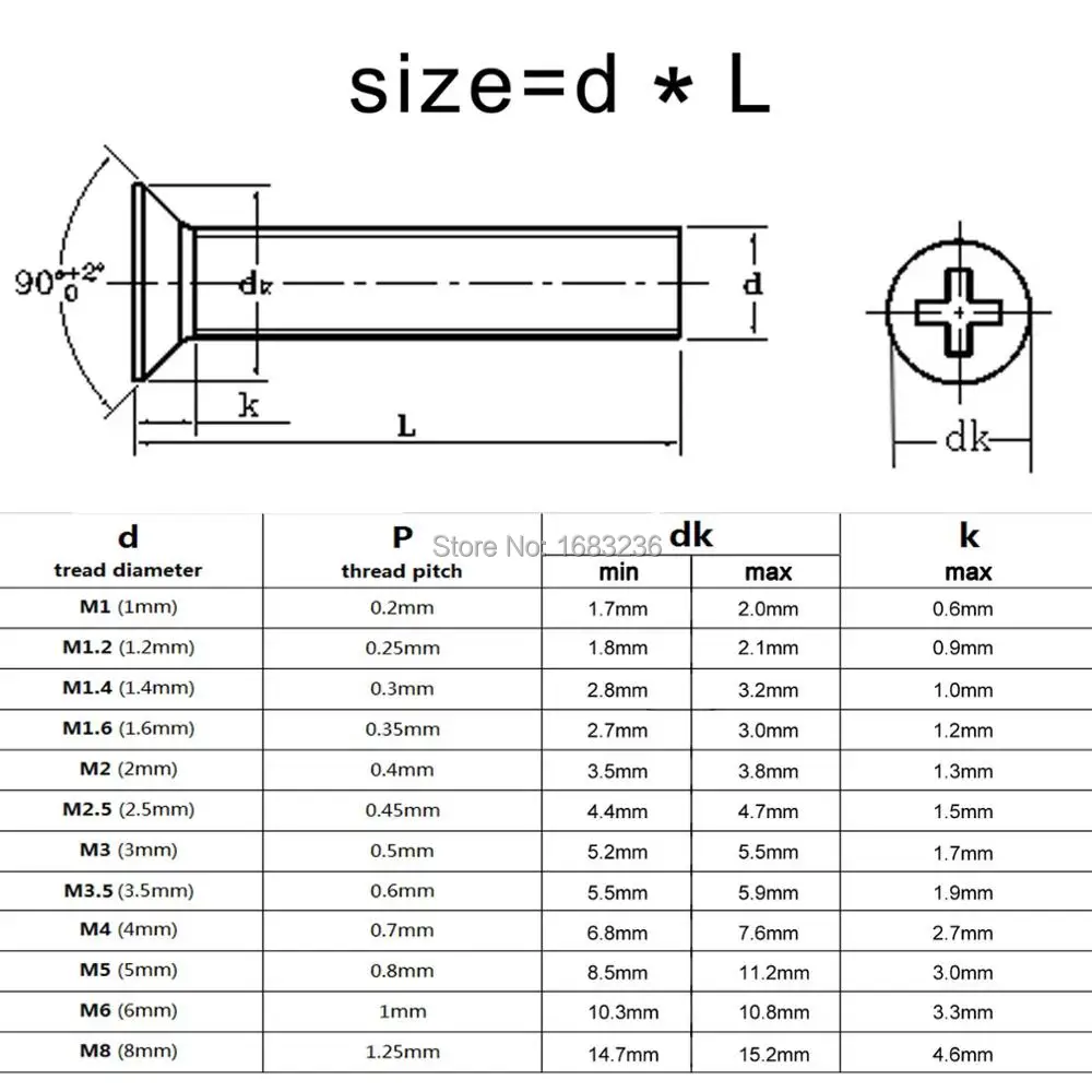 50 шт. M1 M1.2 M1.4 M1.6 M2 M2.5 M3 M4 Mini Micro маленький черный 304 нержавеющая сталь Phillips плоская потайная болт с головкой