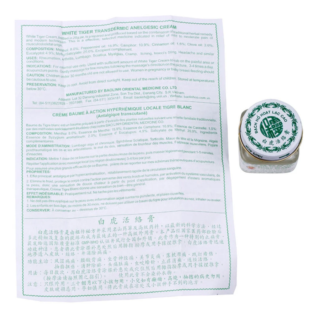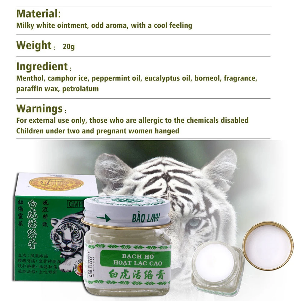 Белый бальзам с тигром, мазь для головной боли, боли в зубах, боли в животе, облегчение боли, бальзам против головокружения, эфирное масло, 20 г пасты