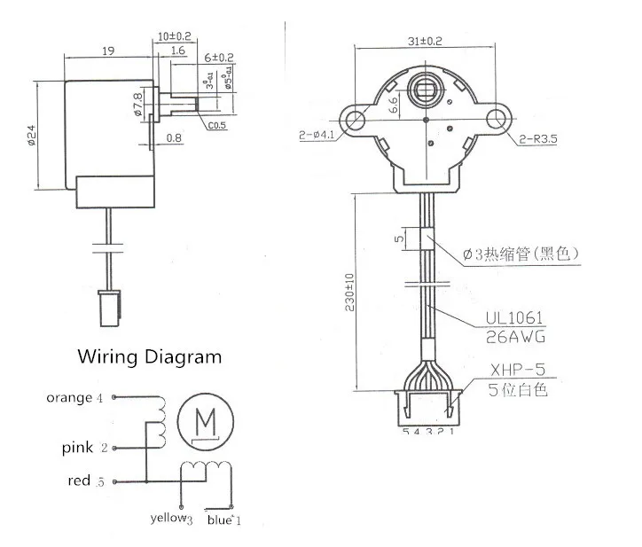 Четырехфазный пятипроводный мотор-редуктор 24BYJ48-12V + XH свинцовый провод