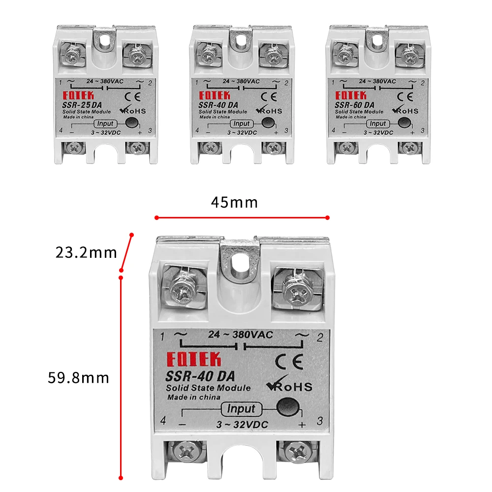 Полупроводниковое реле SSR 10DA 25DA 40DA, однофазное, без пластиковой крышки, вход 3-32 В, 24-380 В переменного тока