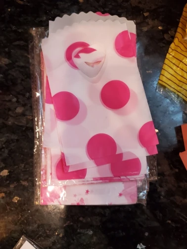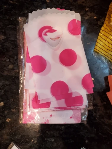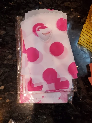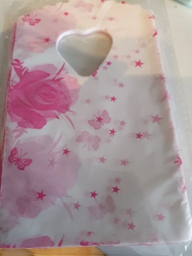 Товар пришел быстро. Пакетики хорошие,но розочки розовые,расцветка не такая как на картинке.Продавец положил один пакетик в подарок, с другим рисунком,спасибо.Количество соответствует заявленному.