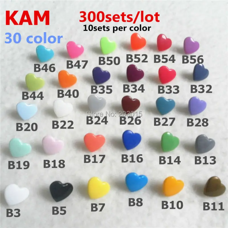 (30 цветов) 300 комплектов T5 Размер 20 в форме сердца оригинальный глянцевый бренд KAM Пластиковые Кнопки Застежки