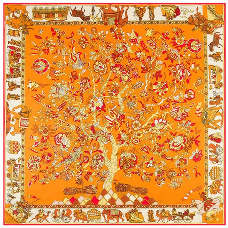 LESIDA чистый Шелковый шарф Для женщин большой шали палантины с изображением новогодней елки и квадратные шарфы Echarpes Обёрточная бумага банданы 130*130 см 1303