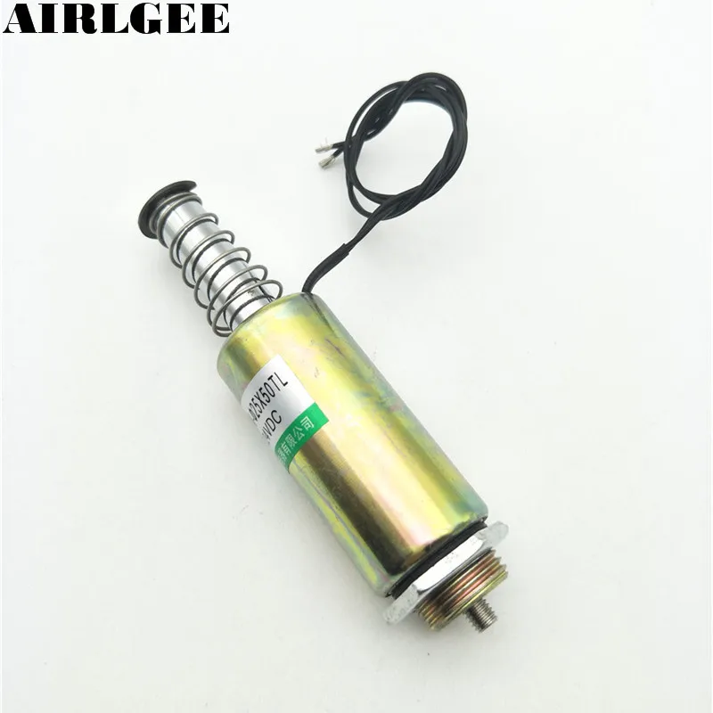 Нажимной тип тяги, линейное движение, трубчатый, поршневой пружины, электромагнит постоянного тока.