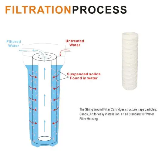 Фильтр осадочных отложений с нитью является экономически эффективным раствором для уменьшения песка, ила, ржавчины, грязи и частиц накипи. Фильтрующий картридж с нитью изготовлен из 100% полипропиленового шнура. Фильтрующий картридж подходит для жилых и коммерческих целей. Этот фильтр осадочного типа подходит как для колодезной, так и для городской воды.