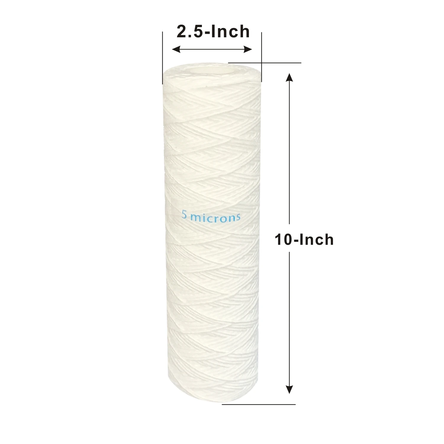 (2) Универсальный Размер: 10 дюймов x 2,5 дюймов Замена струнного намотанного фильтра для воды 5 микрон-подходит для большинства 10-дюймовых стандартных корпусов фильтров для воды.