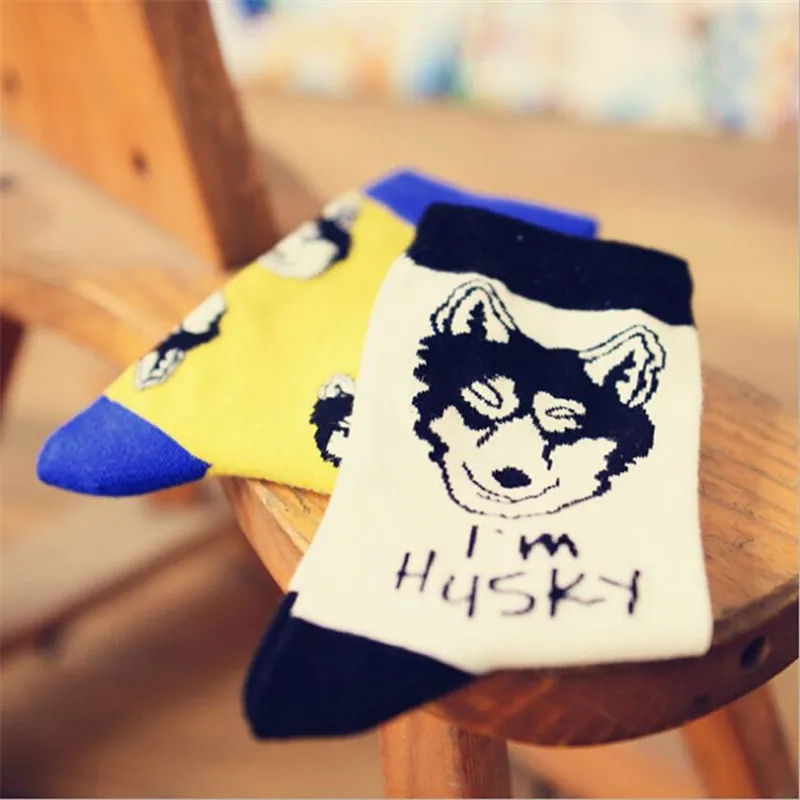 Носки хлопковые унисекс, брендовые Смешные Милые с таксой для мужчин и женщин, длинные с мультяшным принтом хаски, бульдогов, щенков, собак, животных, влюбленных пар