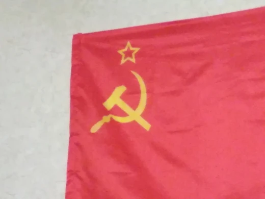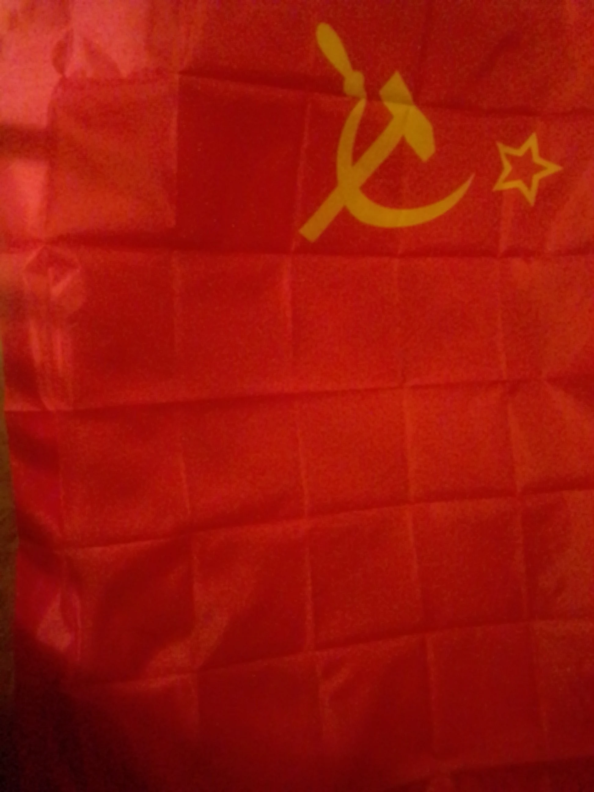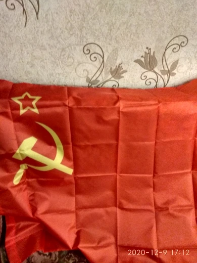 Обещанная дата доставки - 31.12-10.01, пришел 28. Скорость доставки, в общем, порадовала. Качество самого флага на уровне "рыночек порешал": торчат нитки, ткань очень легко гнется, все хорошо, но если случайно загориться, то сгорит в один момент; рисунок(серп и молот, и звезда) - не наклейки, это цвет ткани, то есть испортить его возможно только стиркой или грязью. Для своей цены - отлично.