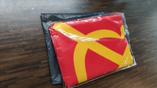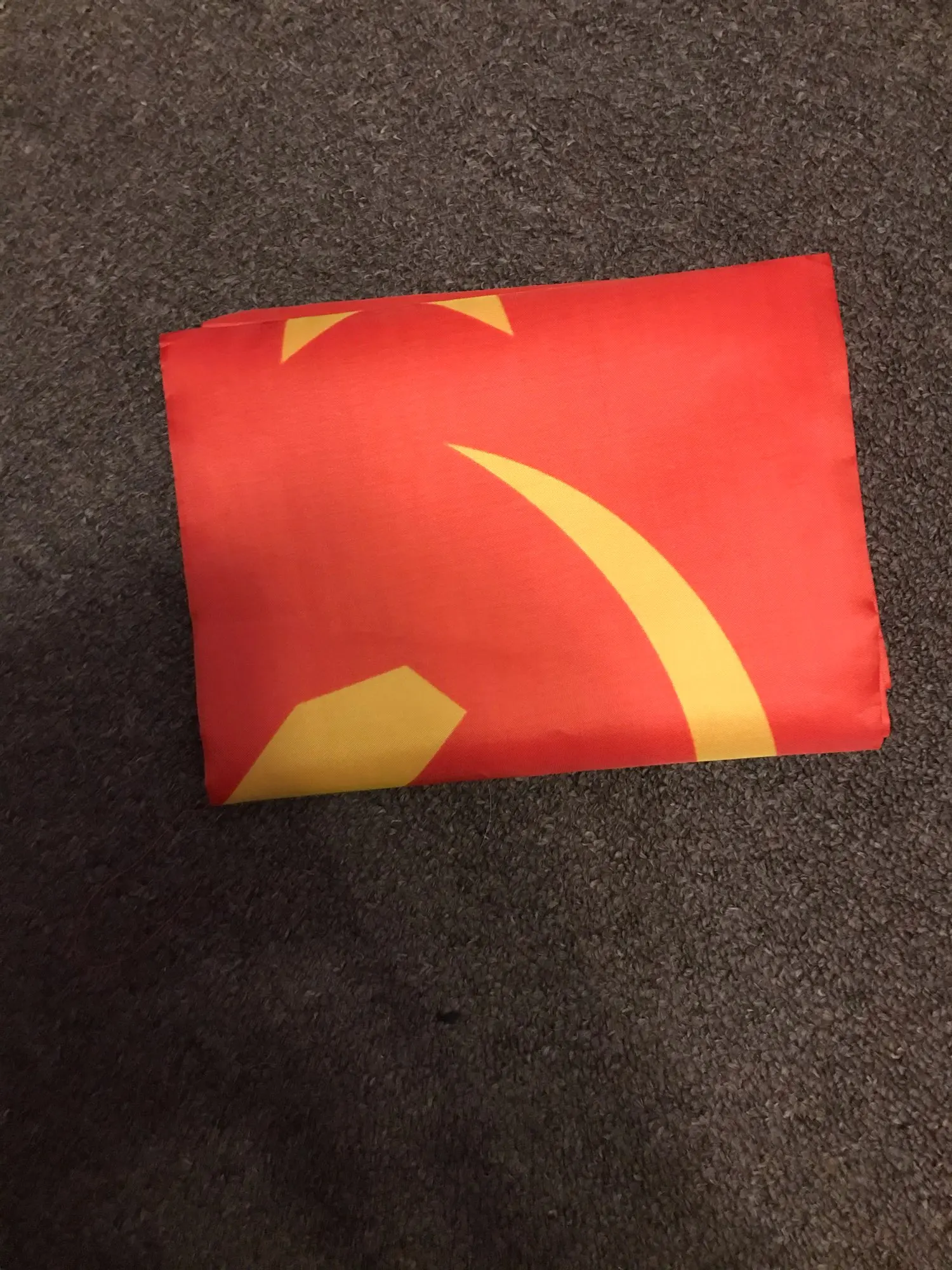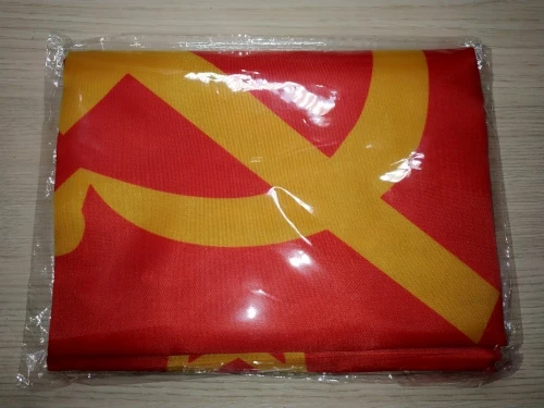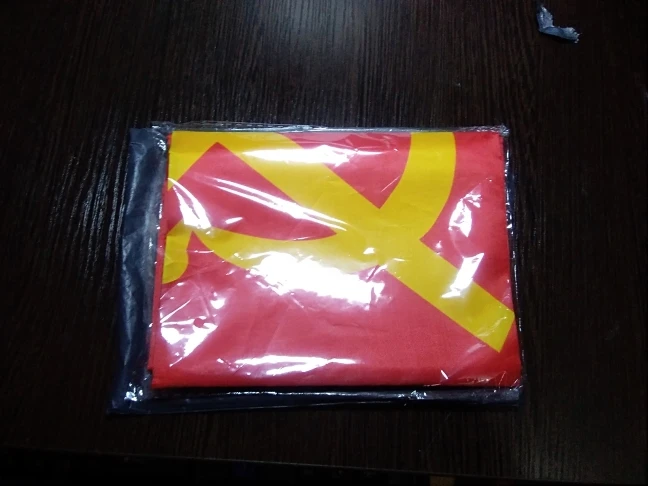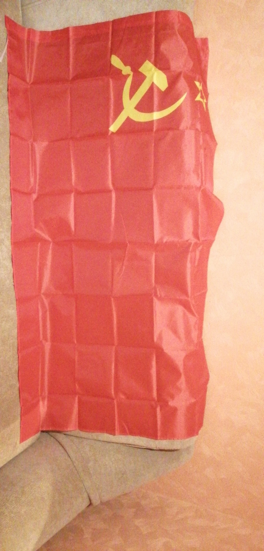 Получил флаг, вроде советский, вроде не рваный, вроде красный, вроде серп - молот и звезда. В полиэтилене с лейблом от отправителя. Все четенько