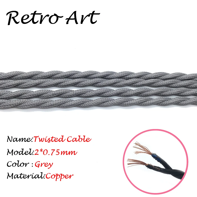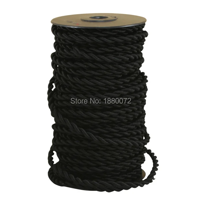 Черный винтажный витой кабель из хлопчатобумажной ткани, декоративный текстильный витой Электрический провод, старинный тканевый шнур для лампы