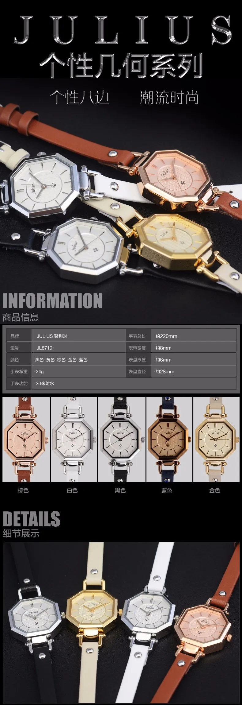 Наручные часы Julius для женщин, Классические Модные Простые ретро-часы с кожаным ремешком, подарок для любимой девушки в офисном стиле на день рождения
