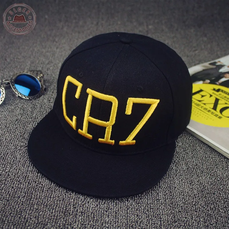 Новые черные бейсболки Криштиану Роналду CR7, Снэпбэк Кепка в стиле хип-хоп, регулируемые кепки унисекс с плоским козырьком HUB021