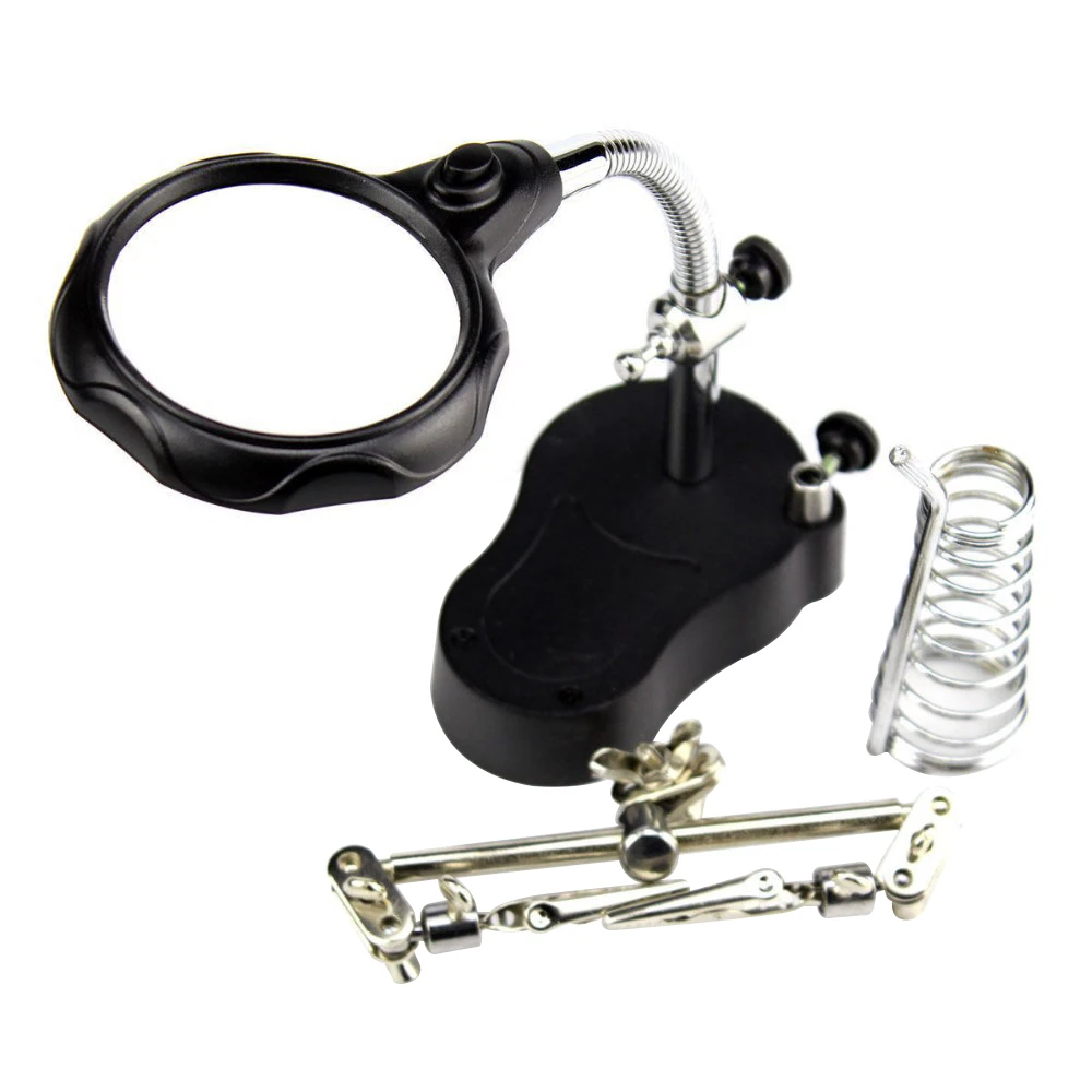 MG16129-A вспомогательный ручной зажим светодиодный увеличительное стекло паяльник стойка с лупой Сварка переделка ремонт держатель инструменты