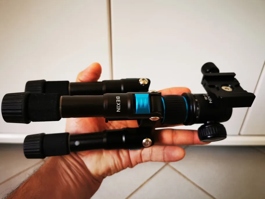 Штатив шикарный. В сложенном виде занимает минимум места. Удобная система выдвижения ножек. Выглядит очень надёжным и хорошо сделанным. Надеюсь, что прослужит долго. Довольно тяжёлый для такого размера. Зато очень устойчивый. В целом восторг от штатива. Действительно хорошая вещь.