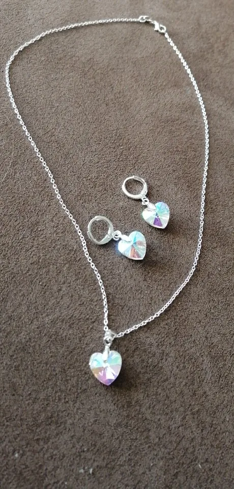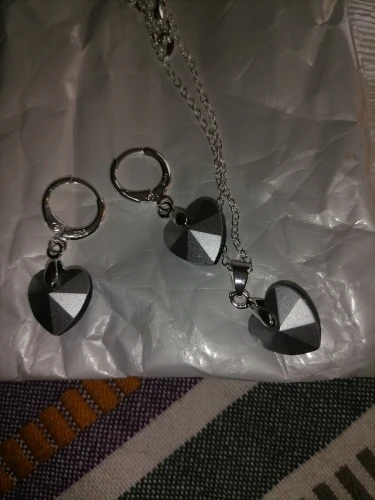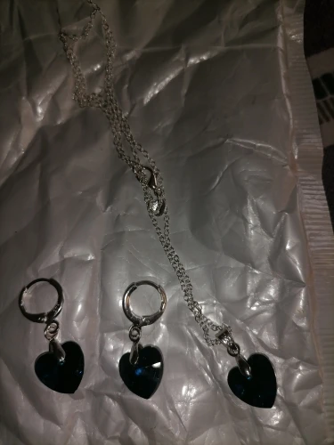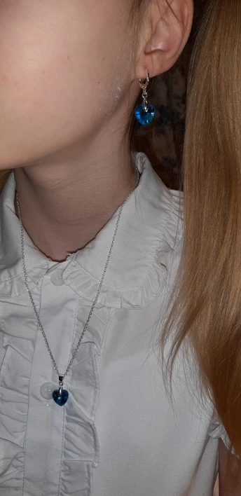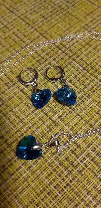 размер сердца на подвеске такой же маленький как и на серьгах. заказывала синий наборчик. прислали жёлтый бледный. не очень цвет...