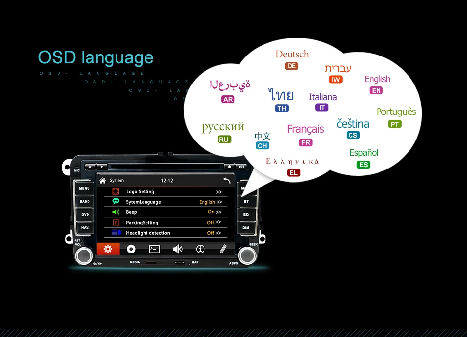 Новейшее обновлениеПроцессор 800 МГц, 256 RAM, с более быстрой скоростью, более стабильной системой.Более 10 видов языков: русский/английский/французский/немецкий/итальянский/испанский/португальский/арабский/Иврит/Тайский/китайский/чешский языкЛоготип Ботинка: Выберите Встроенный 50 видов логотипа автомобиля