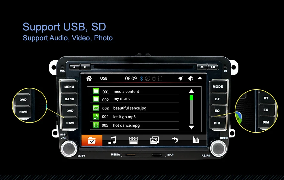 1. 2-DIN сенсорный экран TFT ЖК-дисплей дисплей. Пользовательский интерфейс прост в эксплуатации2. Встроенная функция gps-навигации (Windows CE 6,0)/с GPS антенной и файлами карт3. Поддержка установки и управления рулевого колеса4. Воспроизведение DVD Совместимо с AVI/DVD + R/DVD-R/DVD + RW/DVD-RW/VCD/MP3/CD/CD-RW/JPEG5. Сборка в радио, сборка в RDS. FM/AM доступны для любого рынка. (Европа/Австралия/Южная Америка/Северная Америка/Россия/Япония/и т. Д.)6. Usb-считыватель sd-карт поддерживает воспроизведение MP4/JPEG/ MP3 и WMA с кнопкой7. 1 Route аудио/видео вход. 2 маршрута аудио/видео выход. Высокие частоты/бас/фейдер/регулятор громкости Dsp предустановленный плоский Поп Рок класс Джаз на заказ8. Встроенный Bluetooth для мобильного hands-free.phone книга скачать. Встроенный микрофон9. Поддержка функции mp3-плеера Bluetooth10. Поддержка камеры заднего вида11. Дополнительно: цифровой ТВ-тюнер. Поддержка CMMB DVB ISDB ATSC box