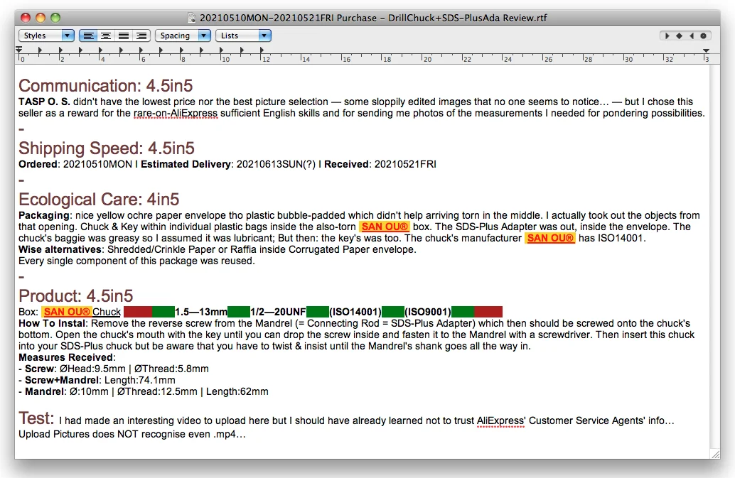 (Разборчивый обзор в Pix) коммуникация: 4.5in5 TASP O.S. нет ни самой низкой цены, ни лучшего выбора изображения, но я выбрал этого продавца в качестве награды за Редкие навыки на английском языке и за отправку мне фотографий необходимых размеров. Скорость доставки: 4,5 дюйма 5 заказанный: 10 мая расчетный: 24 мая получен: 19 мая экологический Уход: 4 дюйма 5 Упаковка: красивый желтый ochre бумажный конверт tho с пластиковым пузырьковым наполнителем, который не порвал посередине. Патрон и ключ в отдельных полиэтиленовых пакетах внутри также-рваные коробки SAN OU. Разумные варианты: измельченная бумага или рафия внутри гофрированного бумажного конверта. Продукт: 4.5in5 как установить: Снимите обратный винт с оправки, который затем должен быть привинчен на нижней части патрона. Откройте отверстие патрона с помощью ключа, пока вы не можете уронить винт внутрь и пристегнуть его к оправке с помощью отвертки. Затем вставьте этот патрон в ваш патрон SDS-Plus, но имейте в виду, что вам нужно скручивать и настаивать, пока хвостовик оправы не пройдет весь путь.
