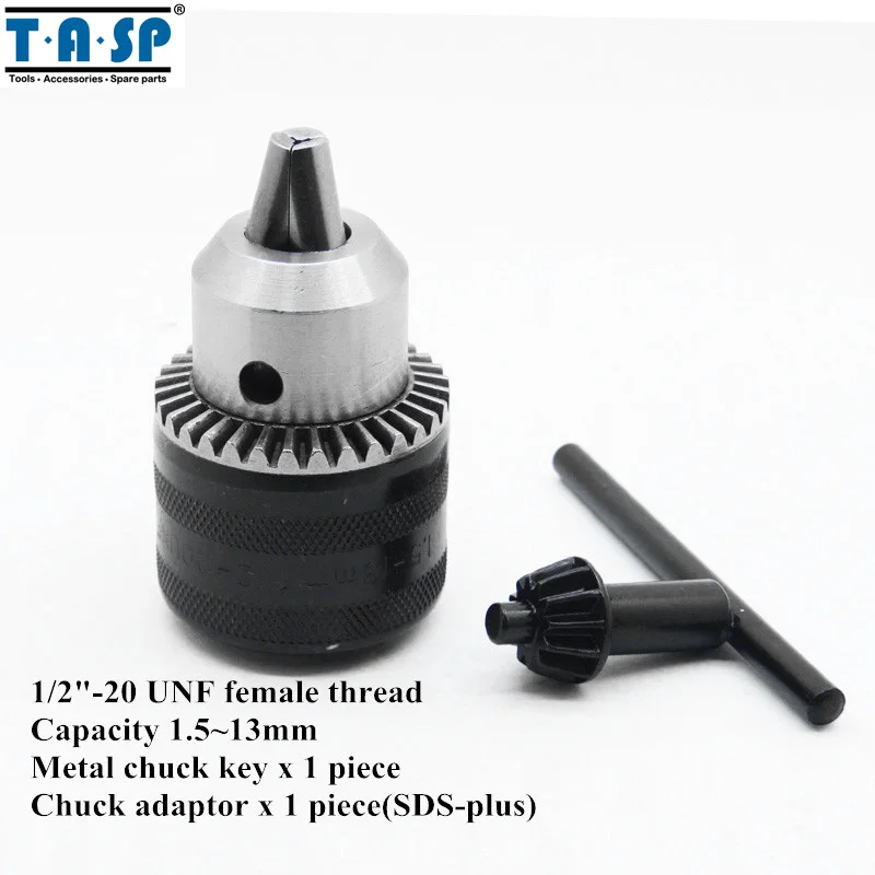 TASP сверлильный патрон 1,5 13 мм с ключом и адаптером SDS plus, электрические дрели и аксессуары для вращающихся молотков 12 "20UNF