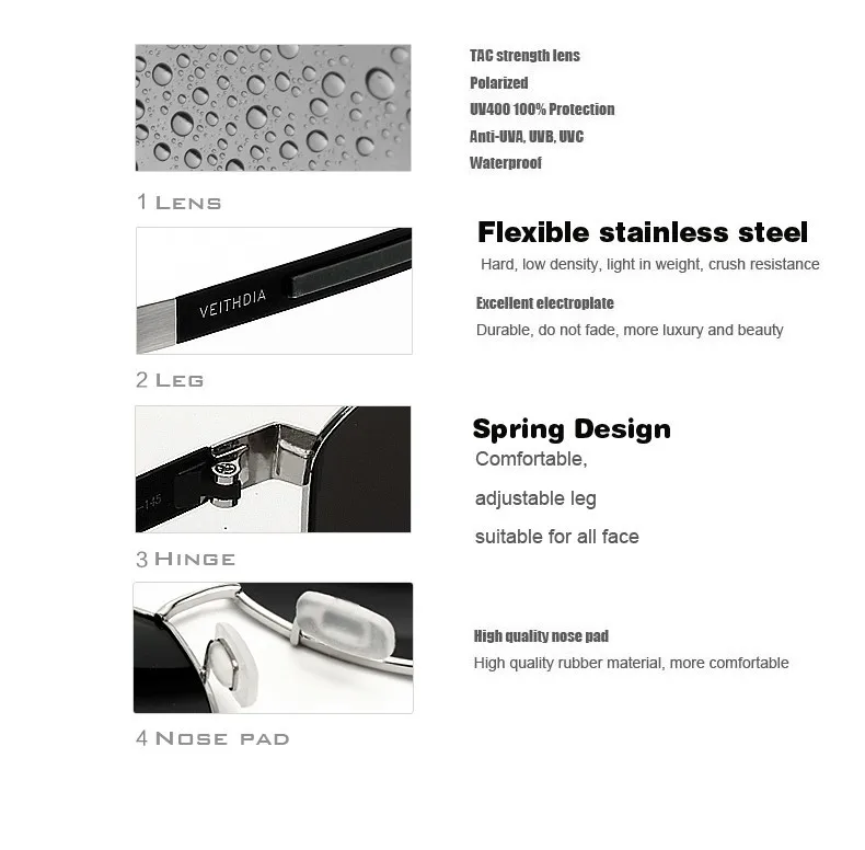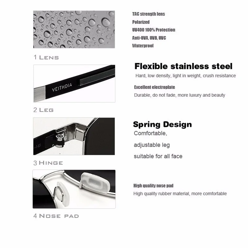 Солнцезащитные очки VEITHDIA, алюминиевые мужские поляризованные UV...