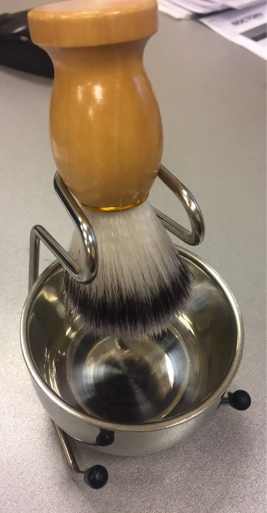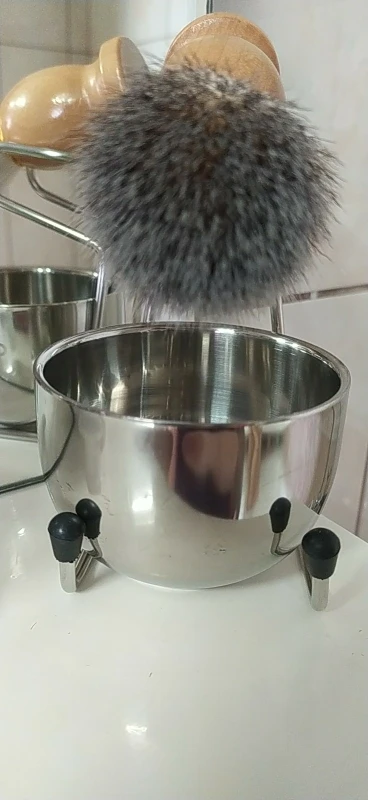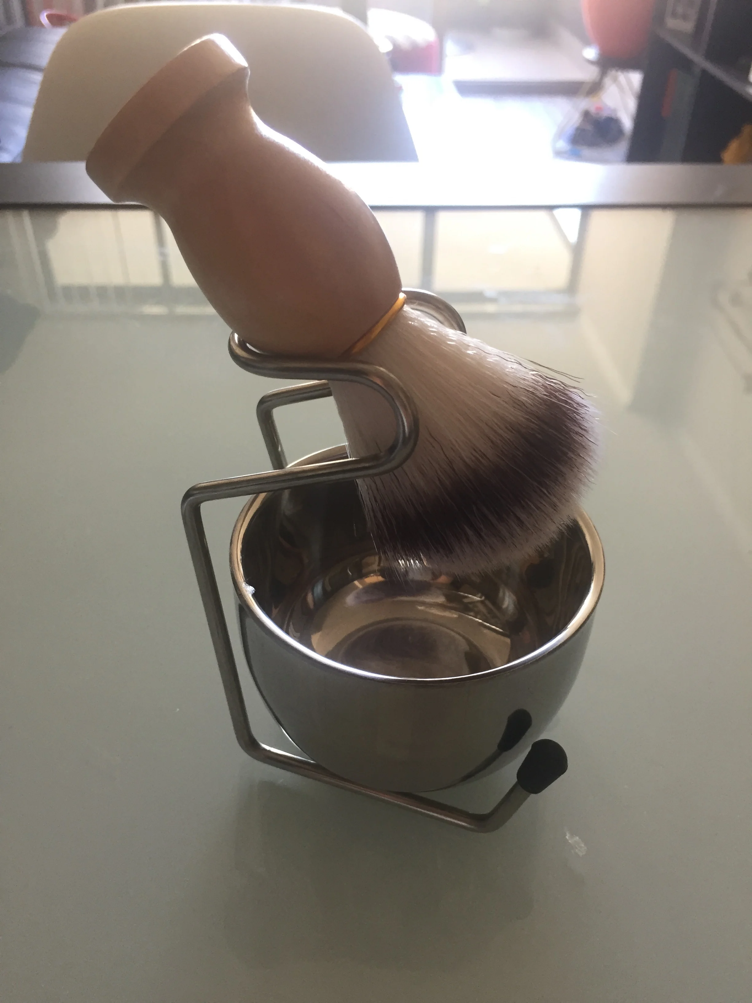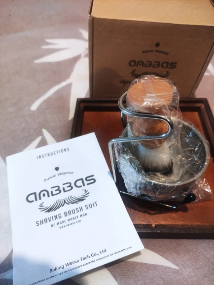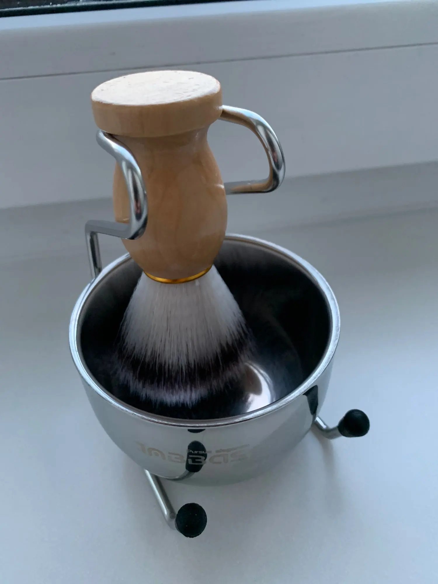 Шло 3 недели в Украину. Что получаем по факту: чашка, подставка, помазок. Помазок - простейшая синтетика, но пену взбивает неплохо, сам ворс средней жёсткости, раздражения на лице не оставляет. После распаковки вымачивал помазок как в кипятке, так и сутки в холодной воде в холодильнике - ворс не выпадает. Чаша - качество относительное, вся в коцках и с пошкрябанной краской. Но - за эти деньги устраивает более чем. Это моя первая чаша на пробу, если пойму что мокрое бритье моё, дальше закажу чашу побольше и поудобнее, так как эта мелка, в руке держать не очень удобно. Подставка - отличная, тут без претензий. Короче, за эти деньги, можете брать смело, если вам абсолютно пофиг на бренды, или если вы как я новичок, и хотите понять, стоит ли оно всех этих заморочек. В принципе продавцу ставлю 5 баллов, приехало все целое, отправил быстро.