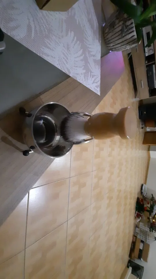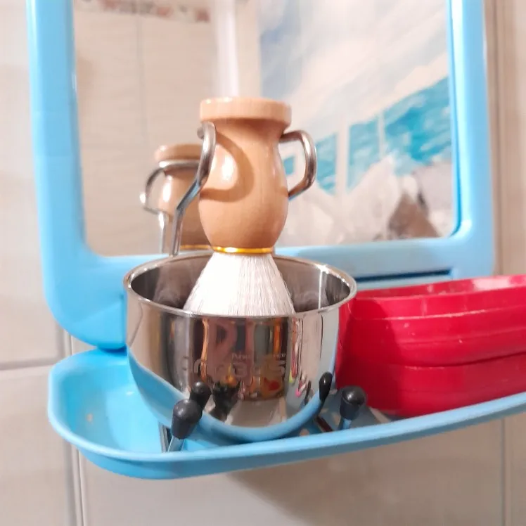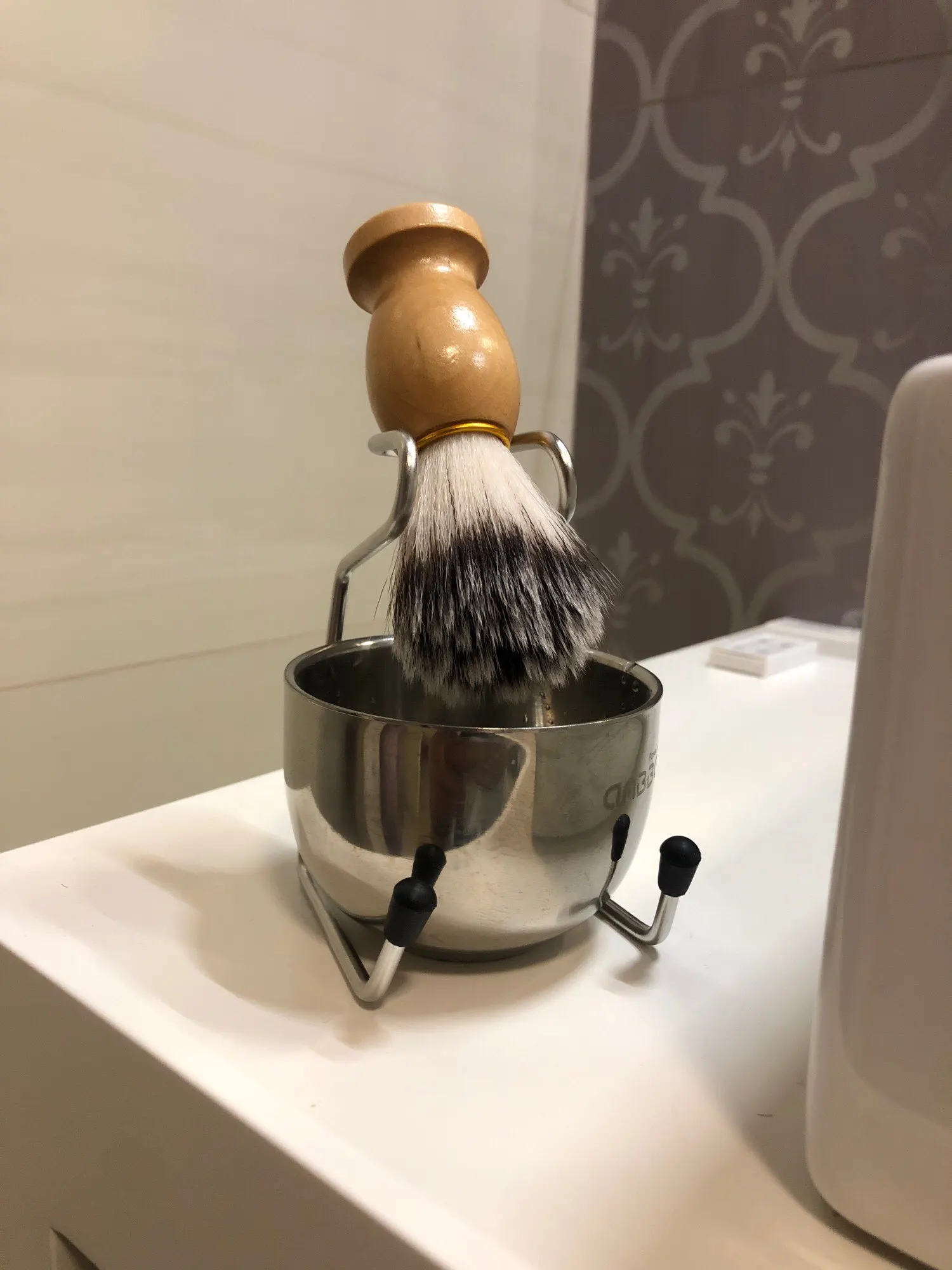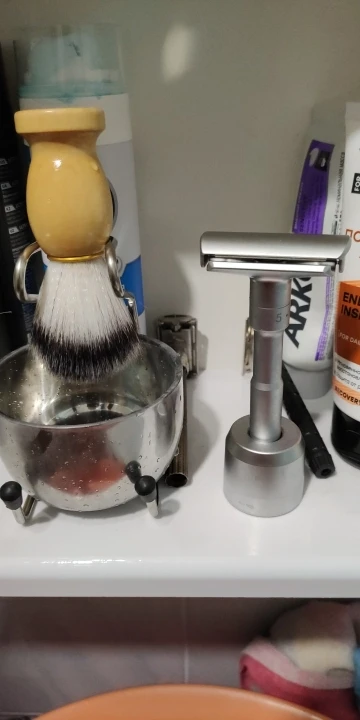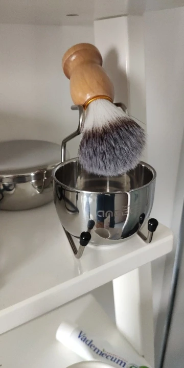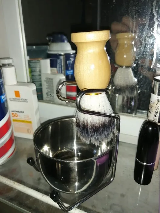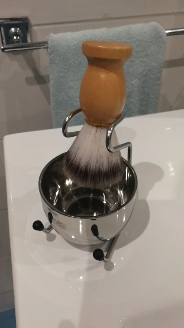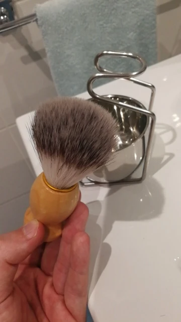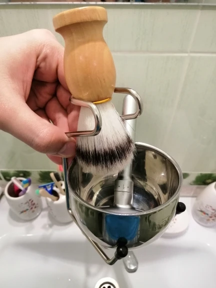 Артефакт приятный и отлично выглядит в раковине. Кисть очень простая, без украшений, но идеальная. Я использовал Гель для бритья, и теперь я использую крем для кисти toja, и пик намного лучше. Очень рад.