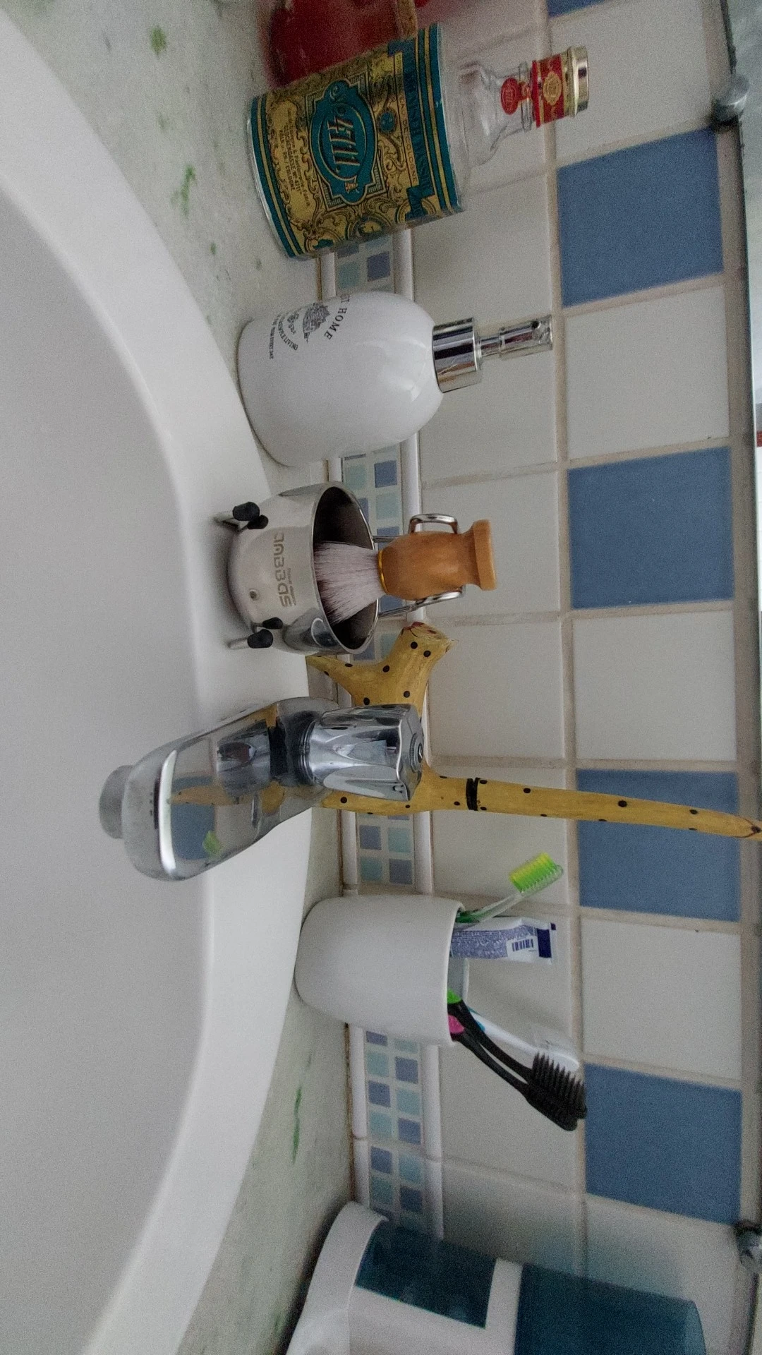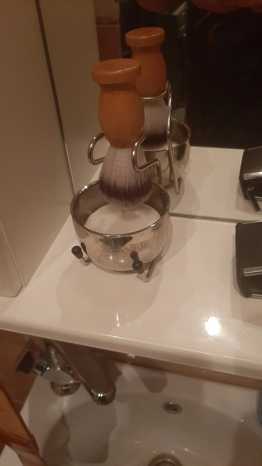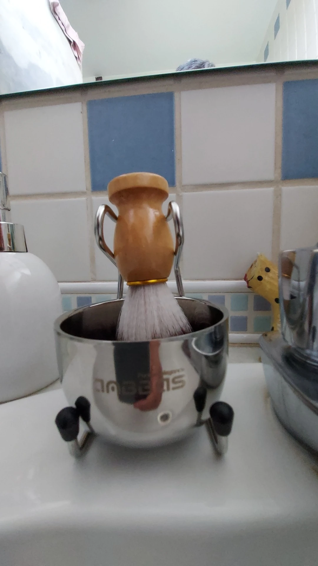 Артефакт приятный и отлично выглядит в раковине. Кисть очень простая, без украшений, но идеальная. Я использовал Гель для бритья, и теперь я использую крем для кисти toja, и пик намного лучше. Очень рад.