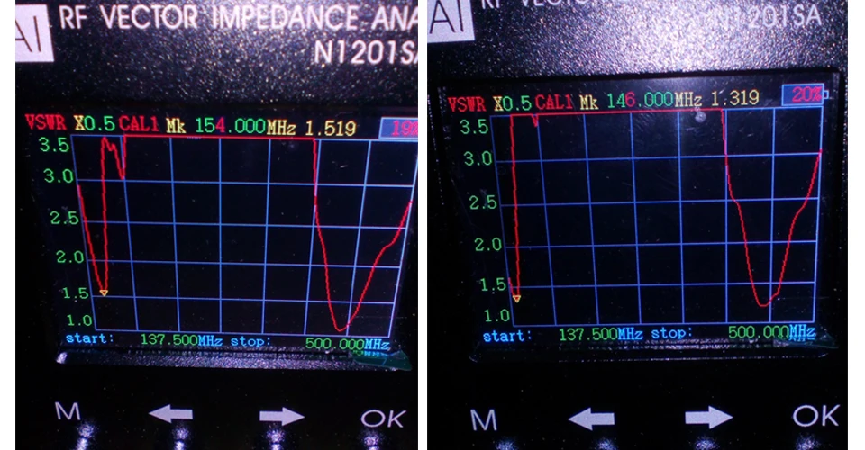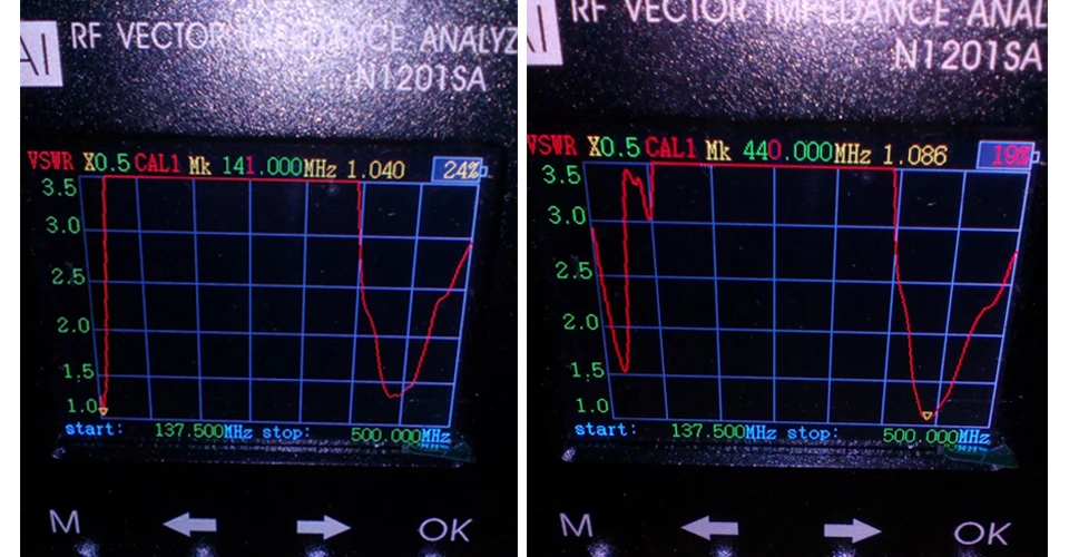 Две антенны с одинаковым КСВ. Качество сборки, материал лучше, чем Nagoya NA-771 в разных вариантах (которые насегодня все поддельные, т.к. оригинал производится на Тайване) да и график КСВ намного ровнее, чем у Nagoya NA-771 в разных сборках. Да, и как видно по КСВ в VHF антенна на работает. Измерительный прибор - NanoVNA. Жалею, что покупал Nagoya NA-771 на AliExpress.