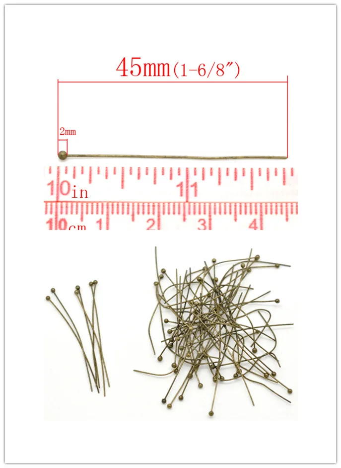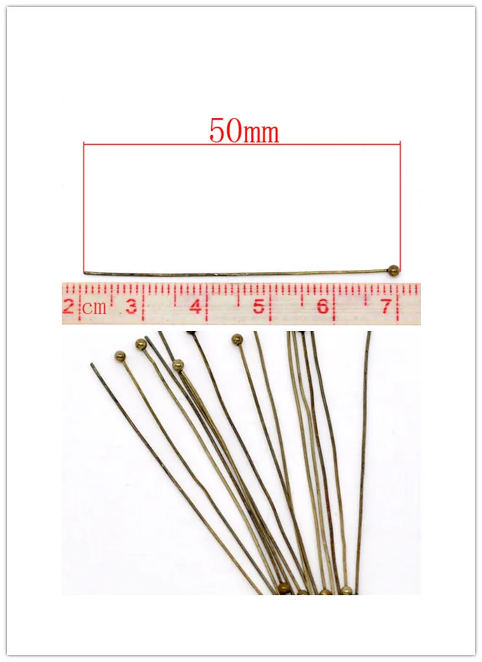 Булавки DoreenBeads с шариковой головкой бронзового оттенка, 50 мм x 0,5 мм (калибр 24 дюйма), в упаковке 30 шт.